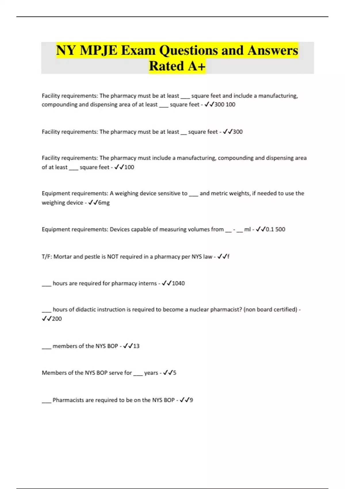 NY MPJE Exam Questions and Answers Rated A+