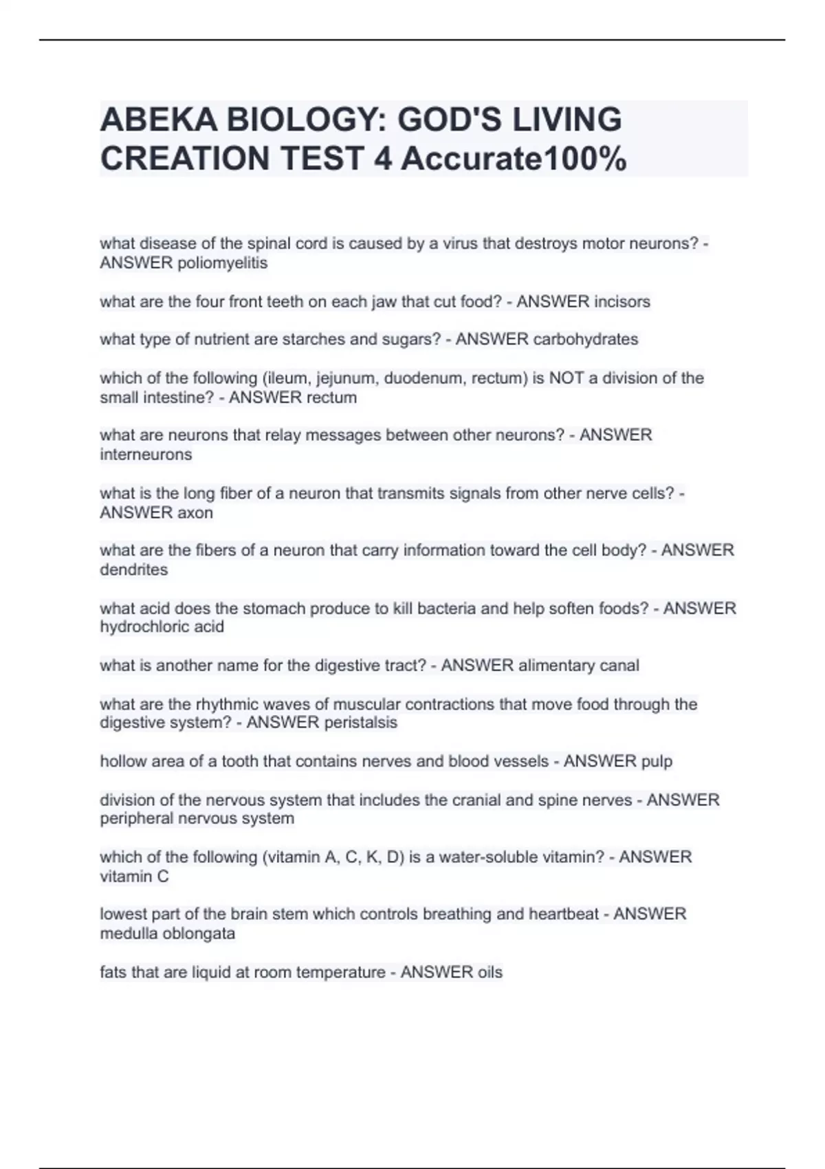ABEKA BIOLOGY: GOD'S LIVING CREATION TEST 4 Accurate100%