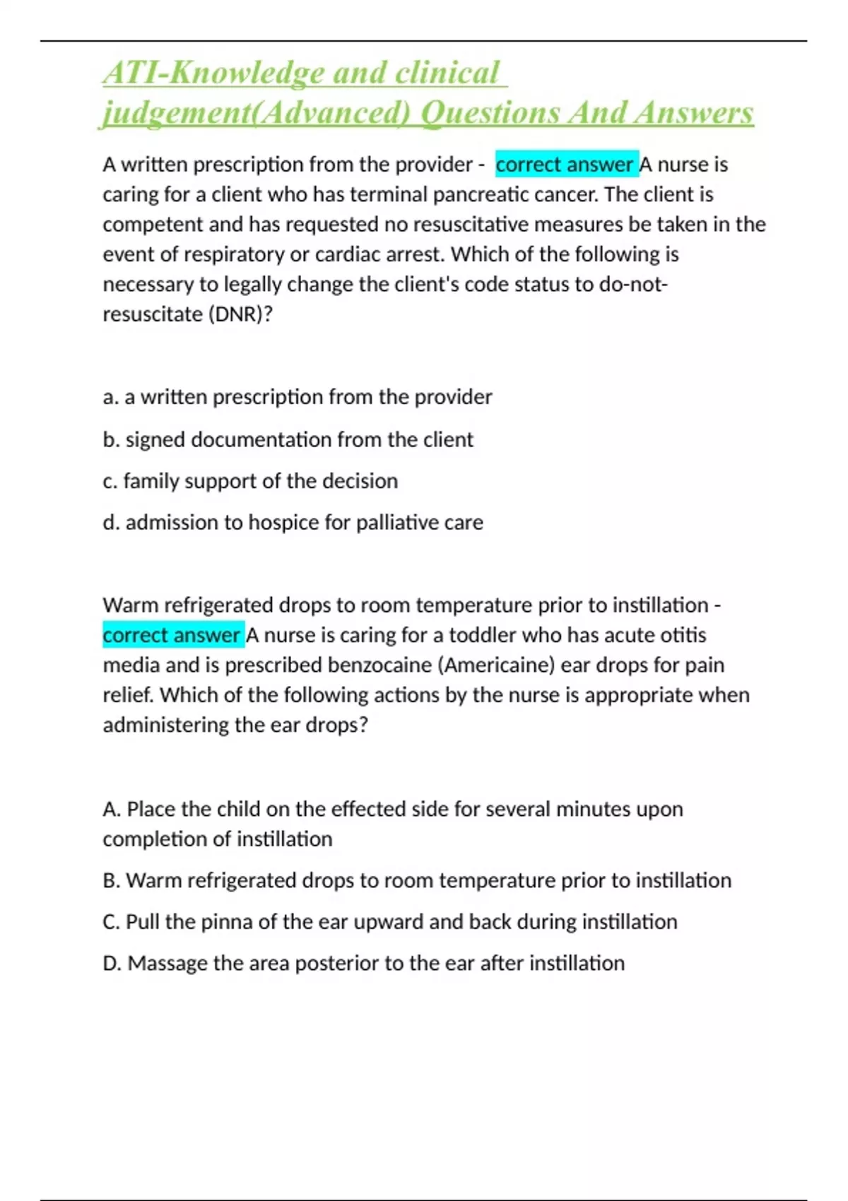 ATI-Knowledge and clinical judgement(Advanced) Questions And Answers