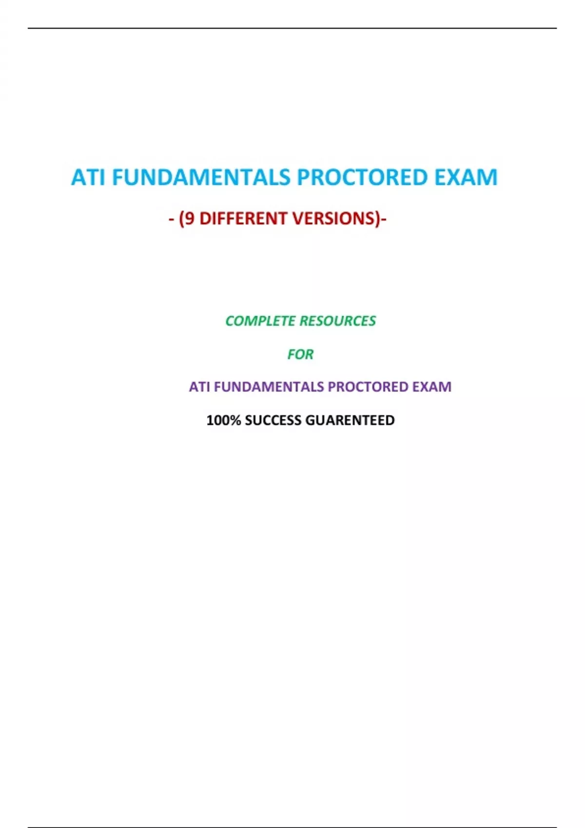 Summary ATI FUNDAMENTALS PROCTORED EXAM (9 LATEST VERSIONS,NGN)-2023