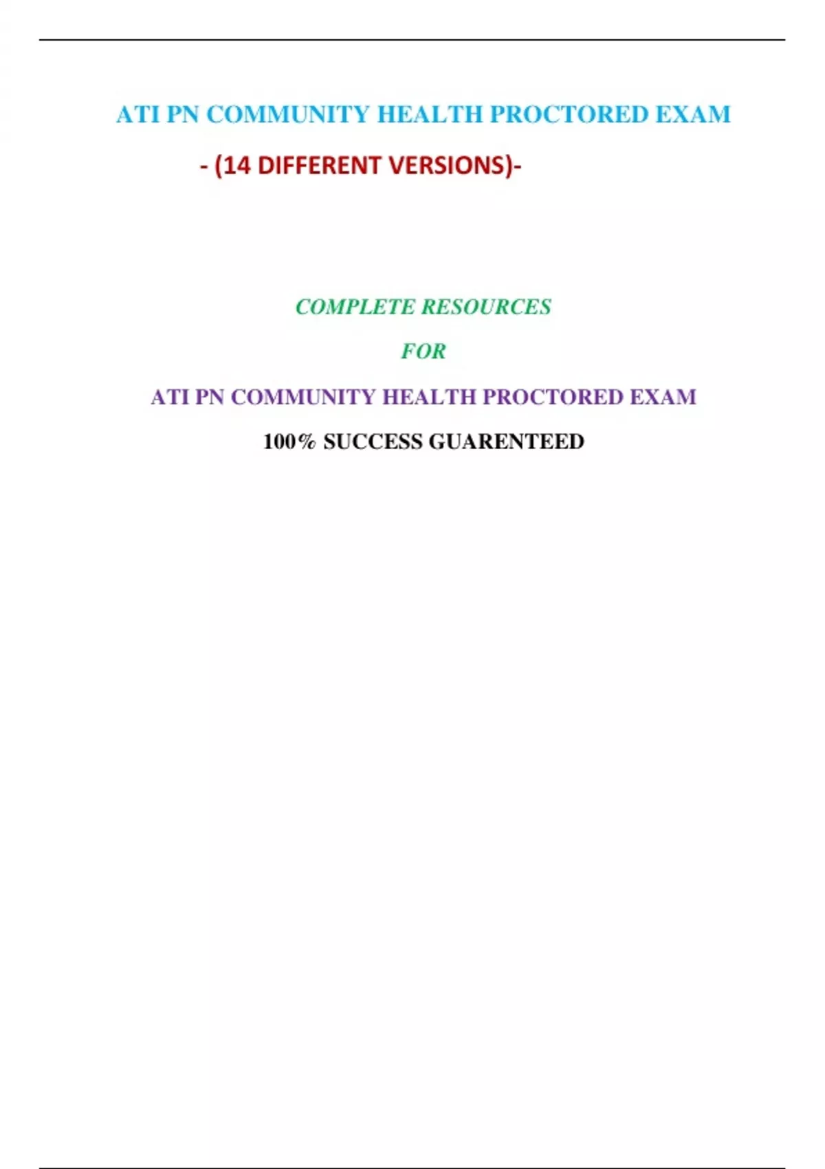 ATI PN COMMUNITY HEALTH PROCTORED EXAM (14 VERSIONS,NGN)-2023