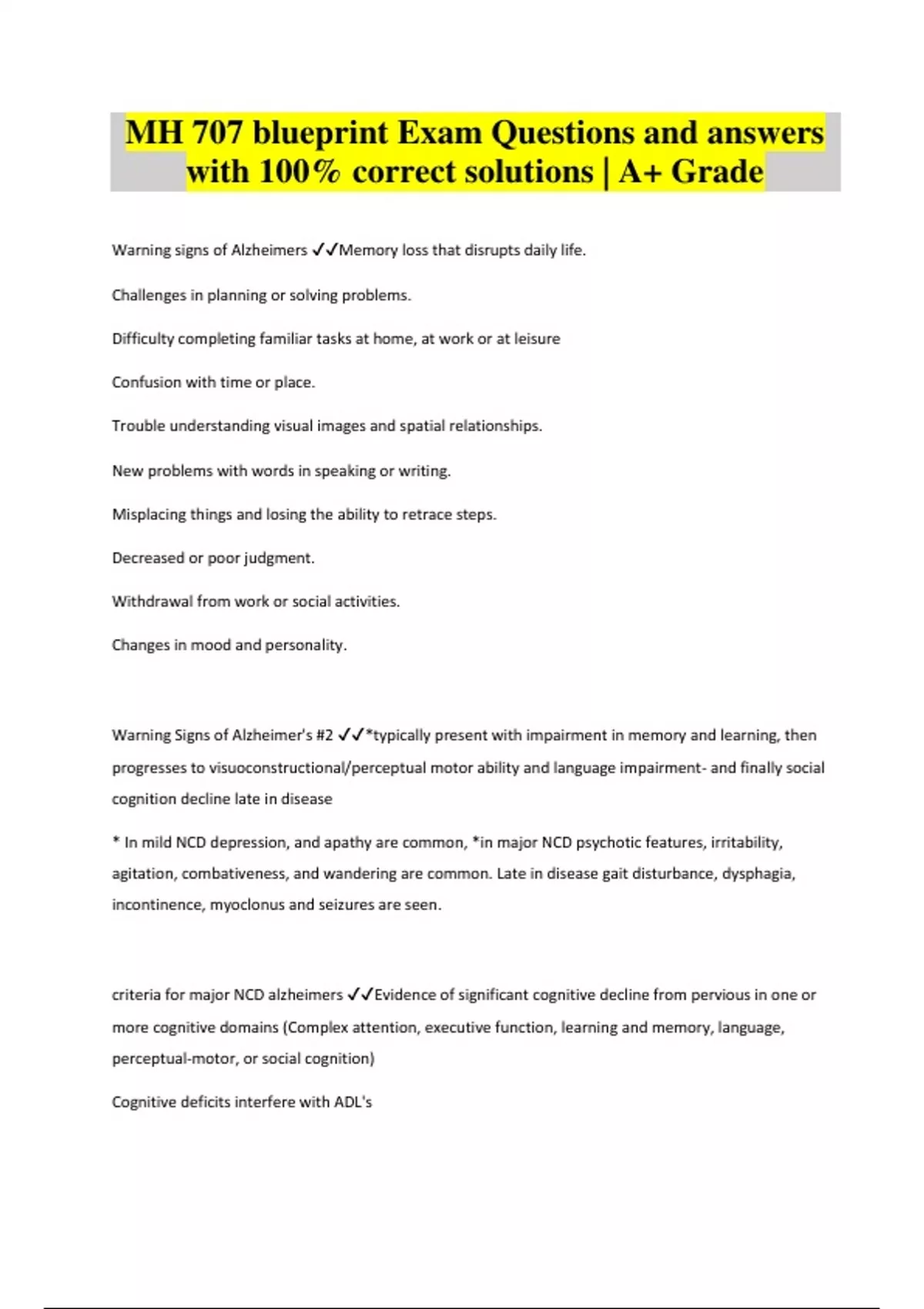 MH 707 blueprint Exam Questions and answers with 100% correct solutions | A+ Grade