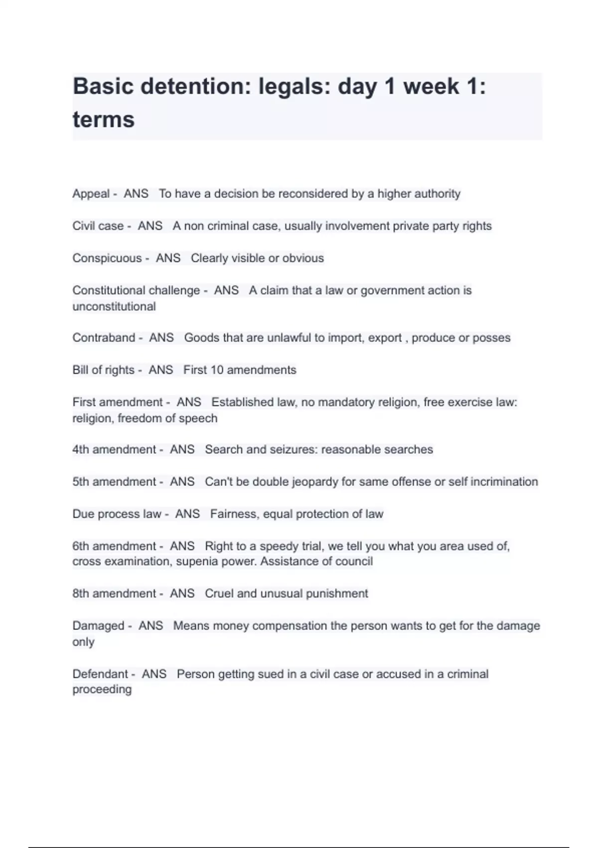 Basic detention: legals: day 1 week 1: terms Exam Questions And Answers
