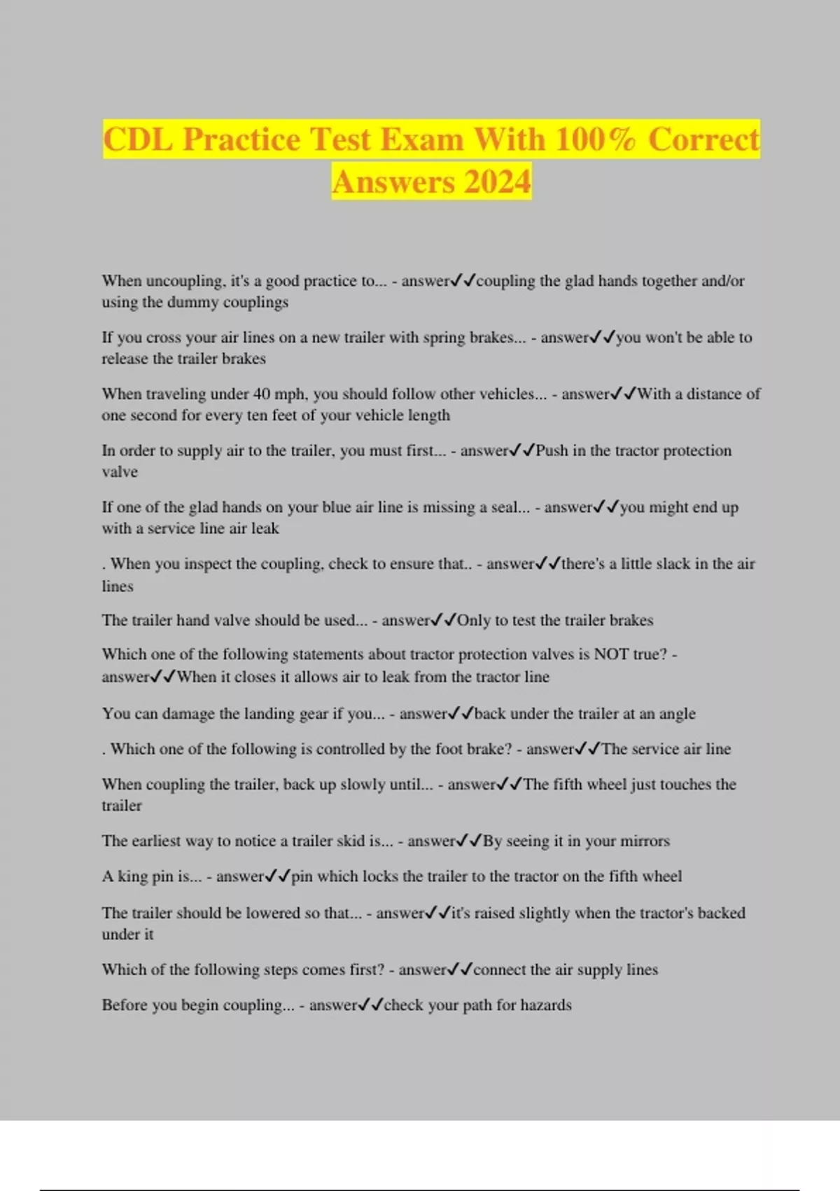 CDL Practice Test Exam With 100% Correct Answers 2024