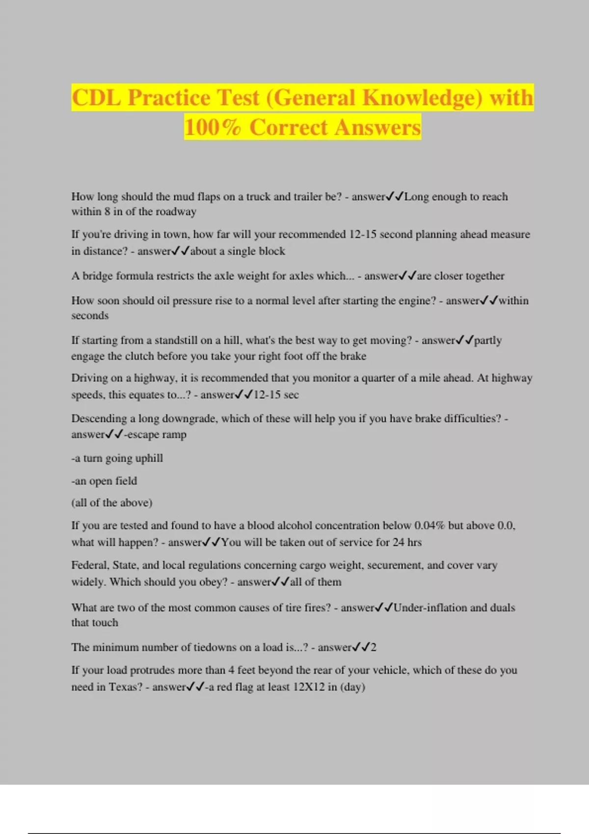 CDL Practice Test (General Knowledge) with 100% Correct Answers