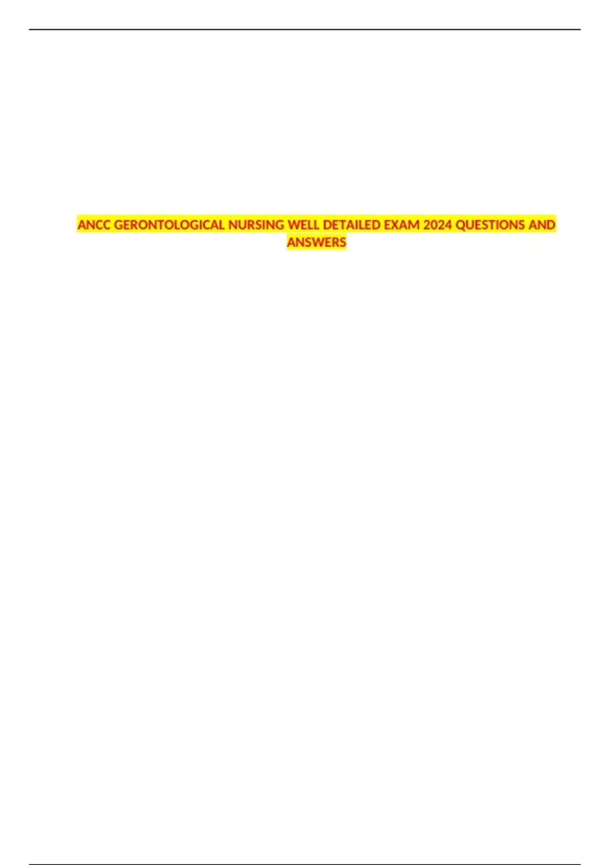 ANCC GERONTOLOGICAL NURSING WELL DETAILED EXAM 2024 QUESTIONS AND ANSWERS