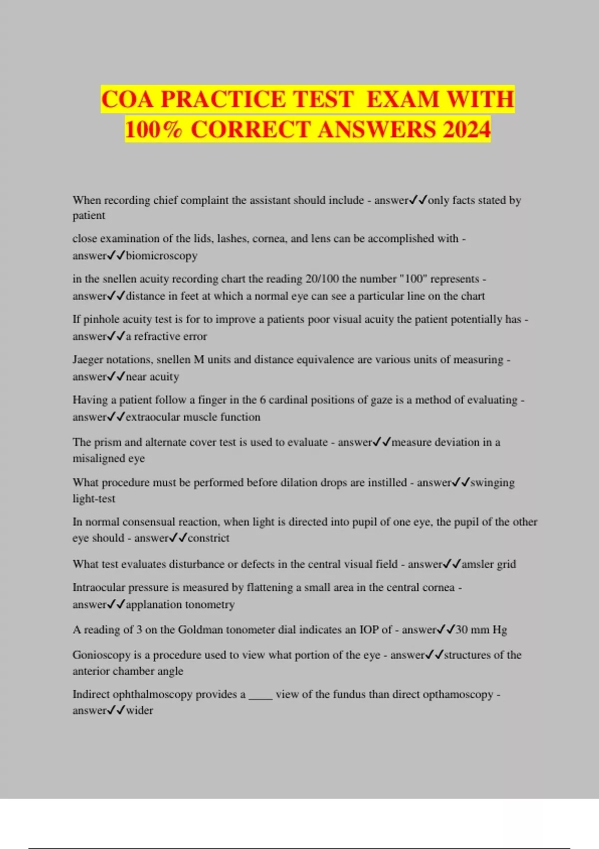 COA PRACTICE TEST EXAM WITH 100% CORRECT ANSWERS 2024