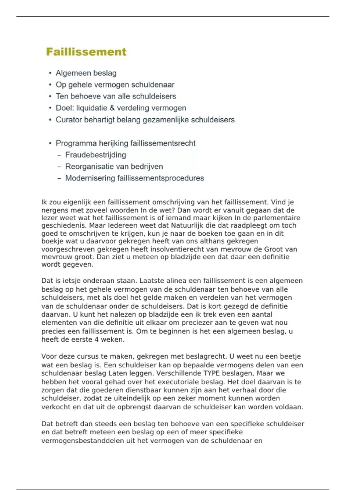 Dat is ietsje onderaan staan. Laatste alinea een faillissement is een algemeen