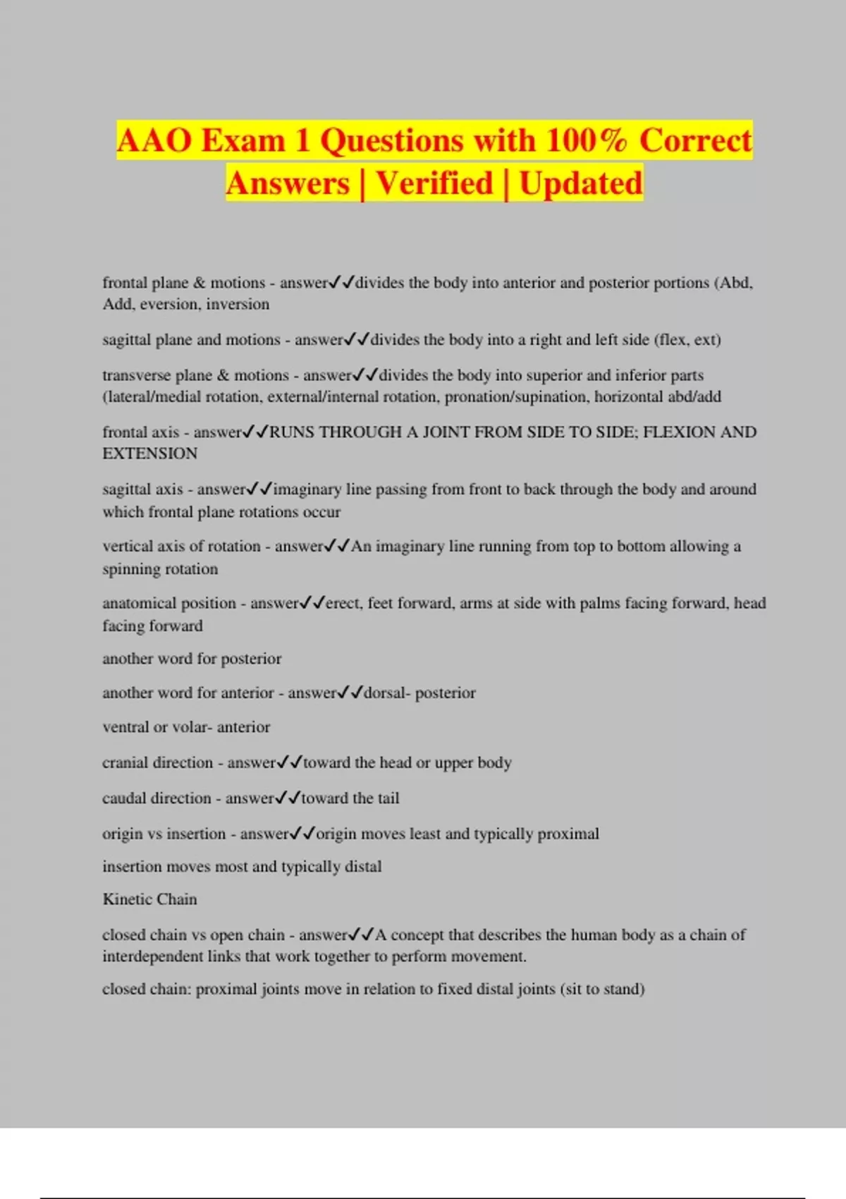 AAO Exam 1 Questions with 100% Correct Answers | Verified | Updated