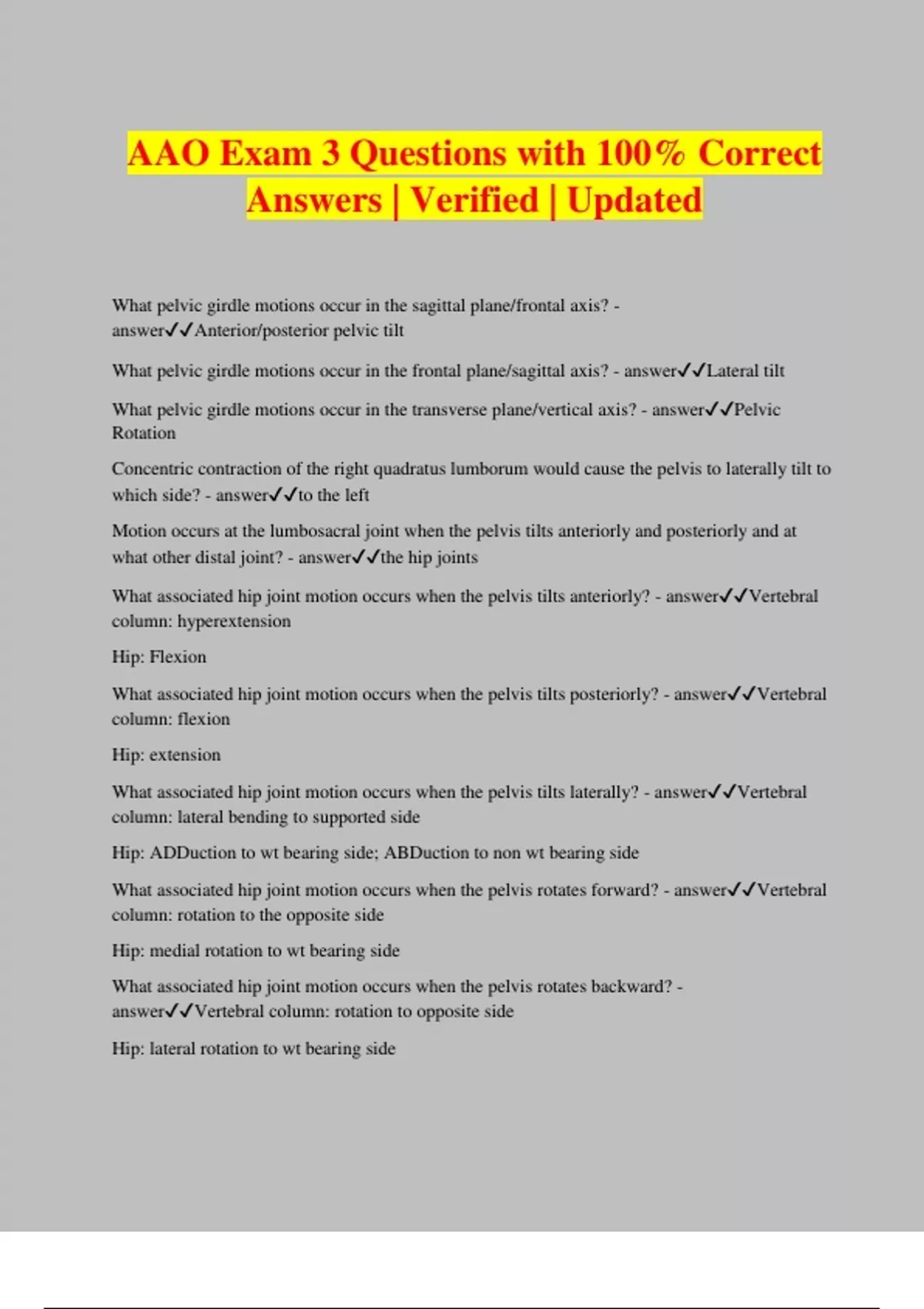 AAO Exam 3 Questions with 100% Correct Answers | Verified | Updated