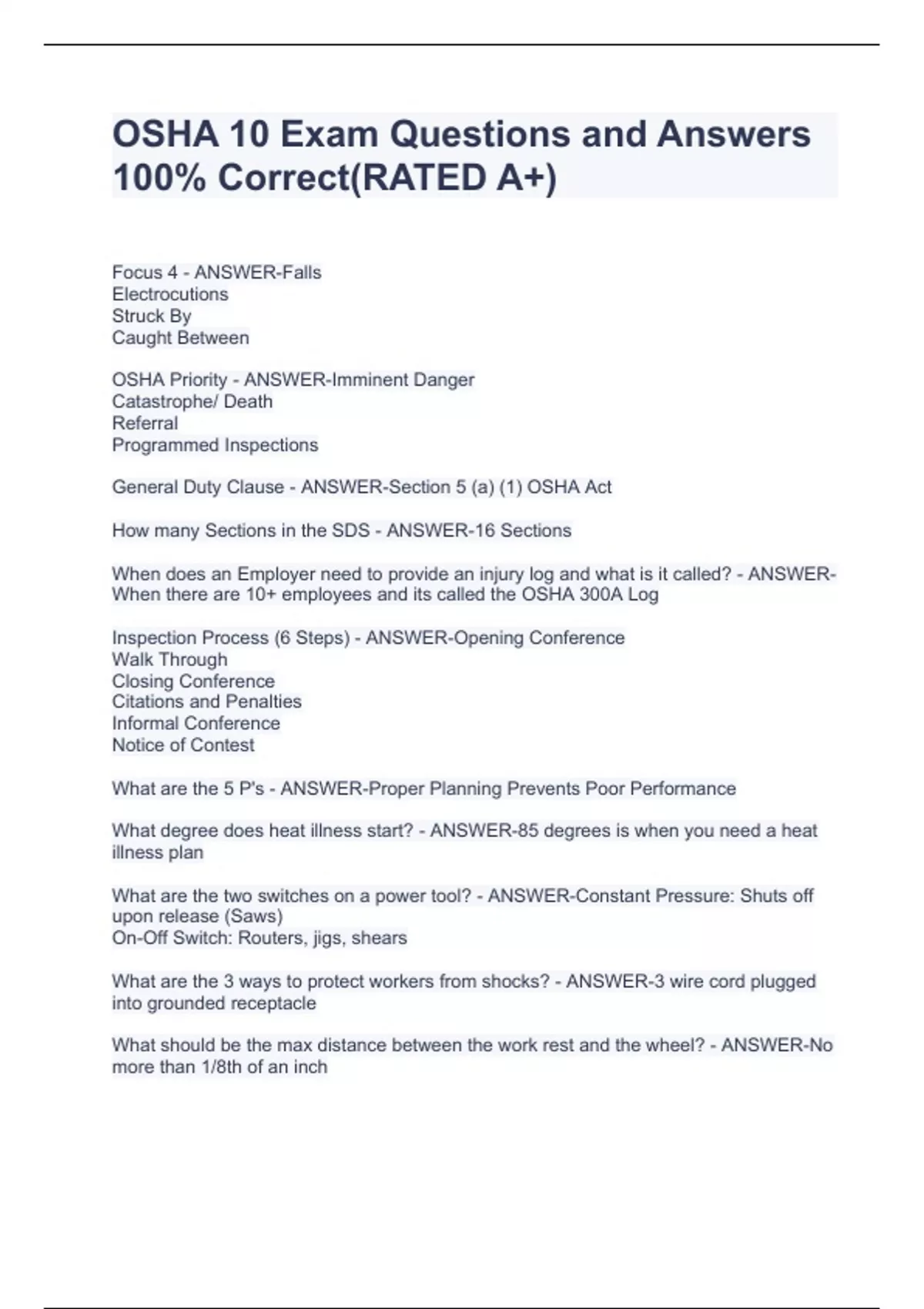 OSHA 10 Exam Questions and Answers 100% Correct(RATED A+) OSHA 10 Exam Questions and Answers 100% Correct(RATED A+) OSHA 10 Exam Questions and Answers 100% Correct(RATED A+) OSHA 10 Exam Questions and Answers 100% Correct(RATED A+) OSHA 10 Exam Questions and Answers 100% Correct(RATED A+) OSHA 10 Exam Questions and Answers 100% Correct(RATED A+) OSHA 10 Exam Questions and Answers 100% Correct(RATED A+) OSHA 10 Exam Questions and Answers 100% Correct(RATED A+) OSHA 10 Exam Questions and Answers 100% Correct(RATED A+) OSHA 10 Exam Questions and Answers 100% Correct(RATED A+)
