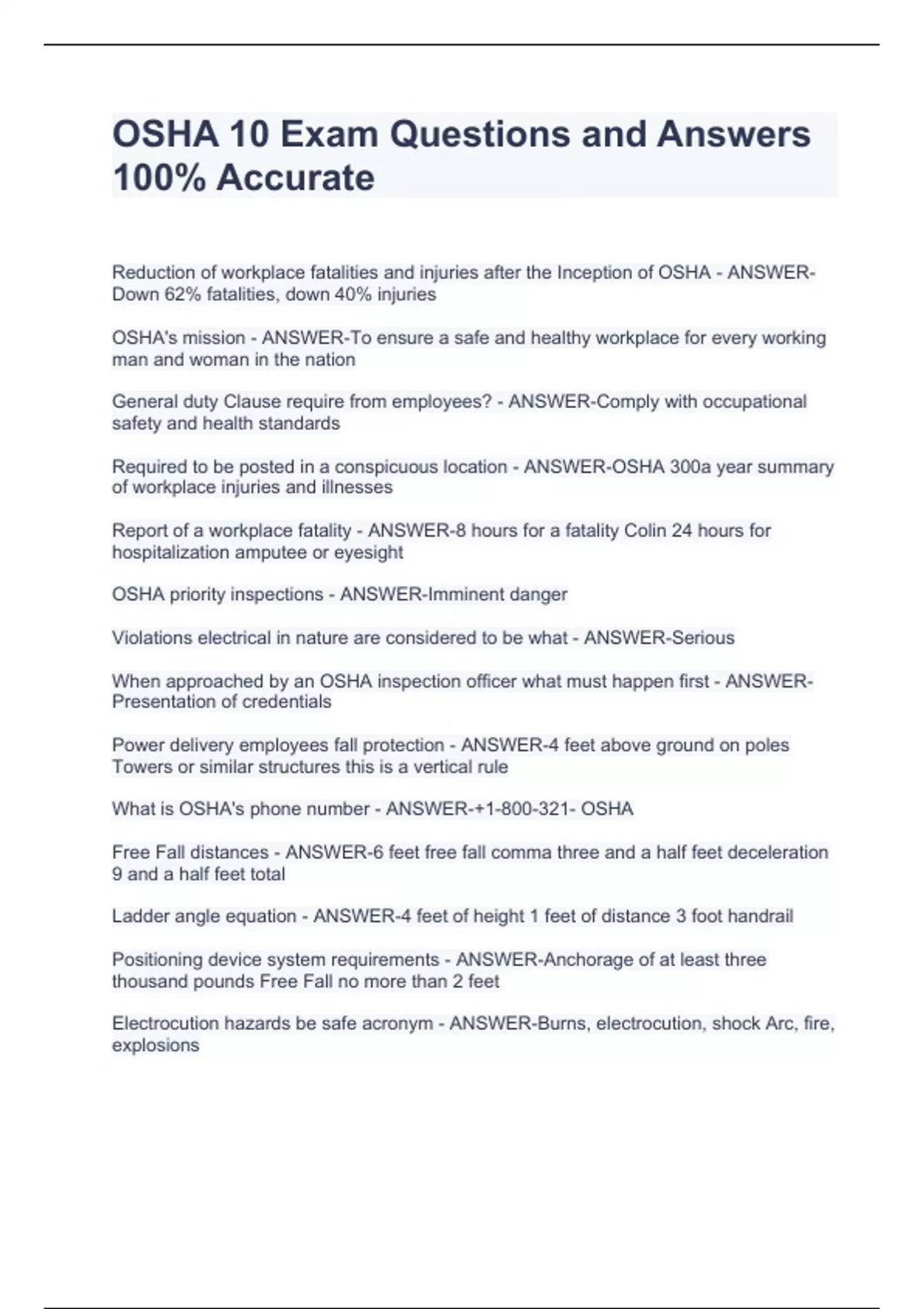 OSHA 10 Exam Questions and Answers 100% Accurate