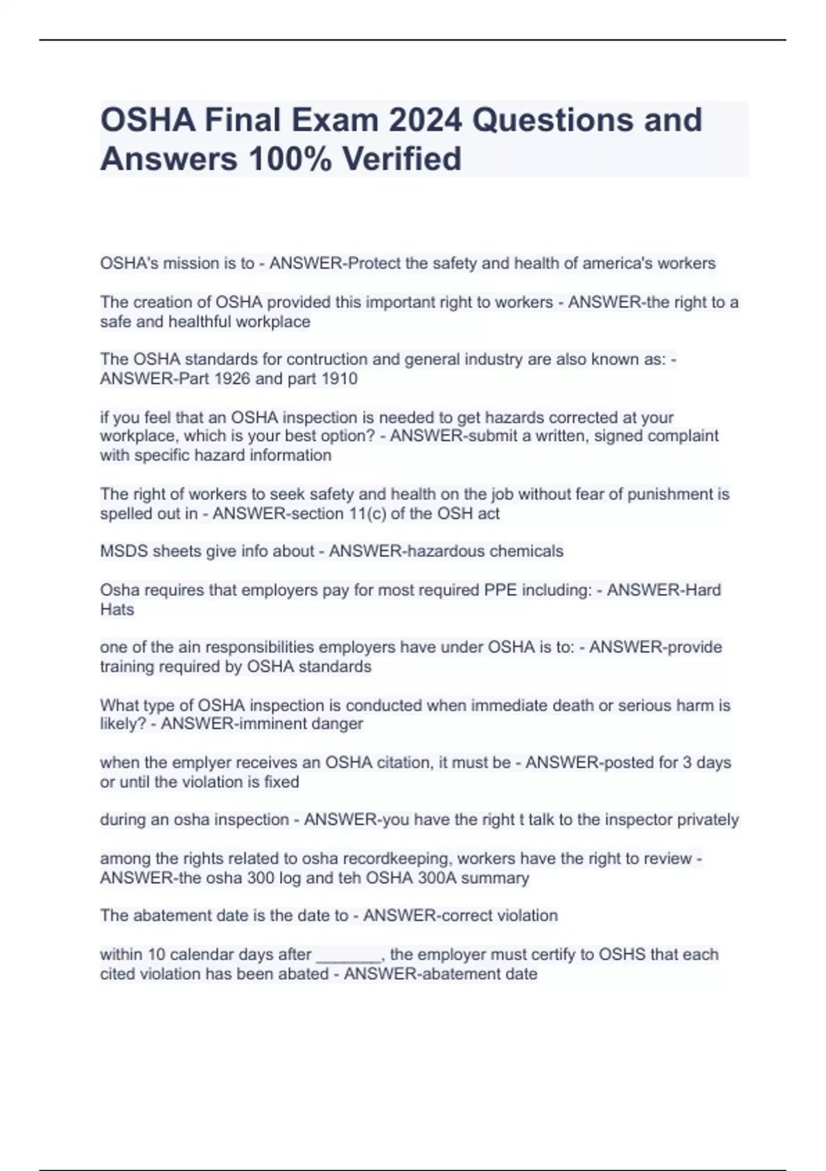 OSHA Final Exam 2024 Questions and Answers 100% Verified OSHA Final Exam 2024 Questions and Answers 100% Verified OSHA Final Exam 2024 Questions and Answers 100% Verified OSHA Final Exam 2024 Questions and Answers 100% Verified OSHA Final Exam 2024 Questions and Answers 100% Verified OSHA Final Exam 2024 Questions and Answers 100% Verified OSHA Final Exam 2024 Questions and Answers 100% Verified OSHA Final Exam 2024 Questions and Answers 100% Verified OSHA Final Exam 2024 Questions and Answers 100% Verified OSHA Final Exam 2024 Questions and Answers 100% Verified