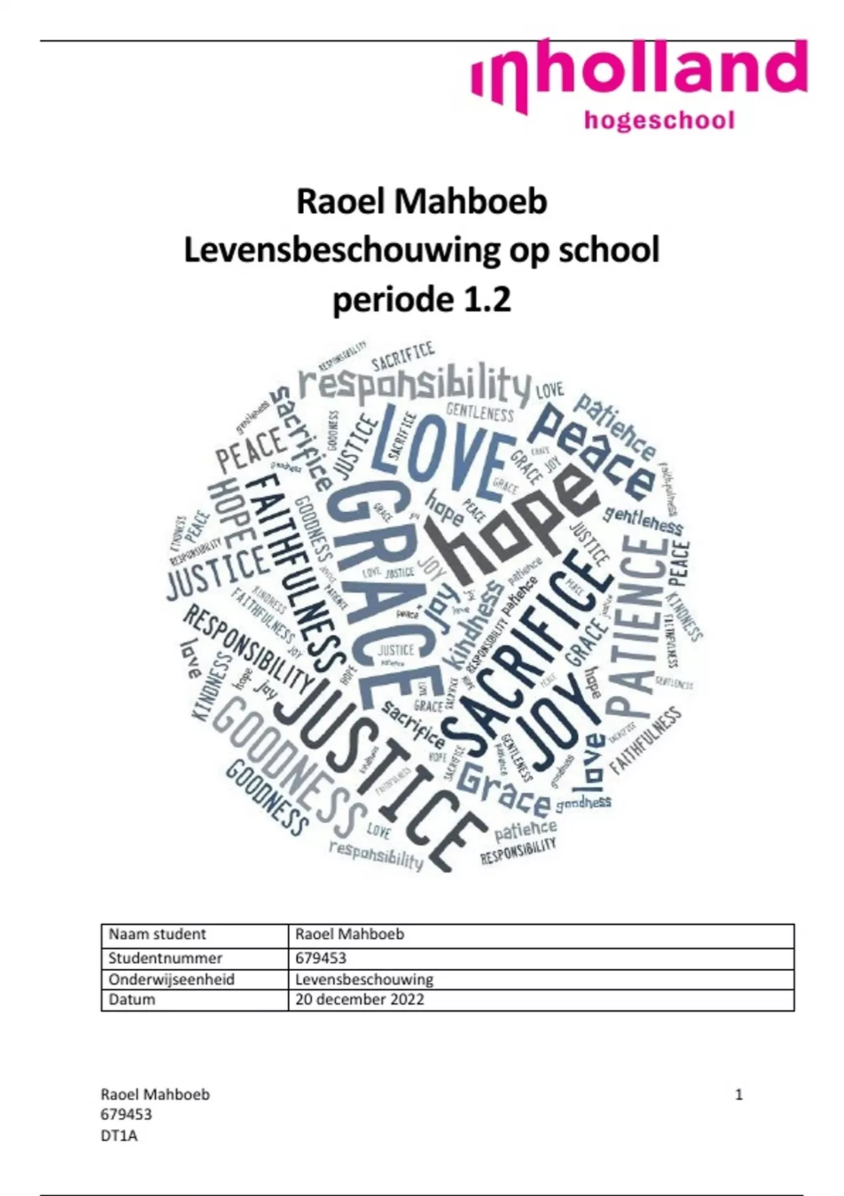 Hierbij het verslag levensbeschouwing voor de pabo jaar 1