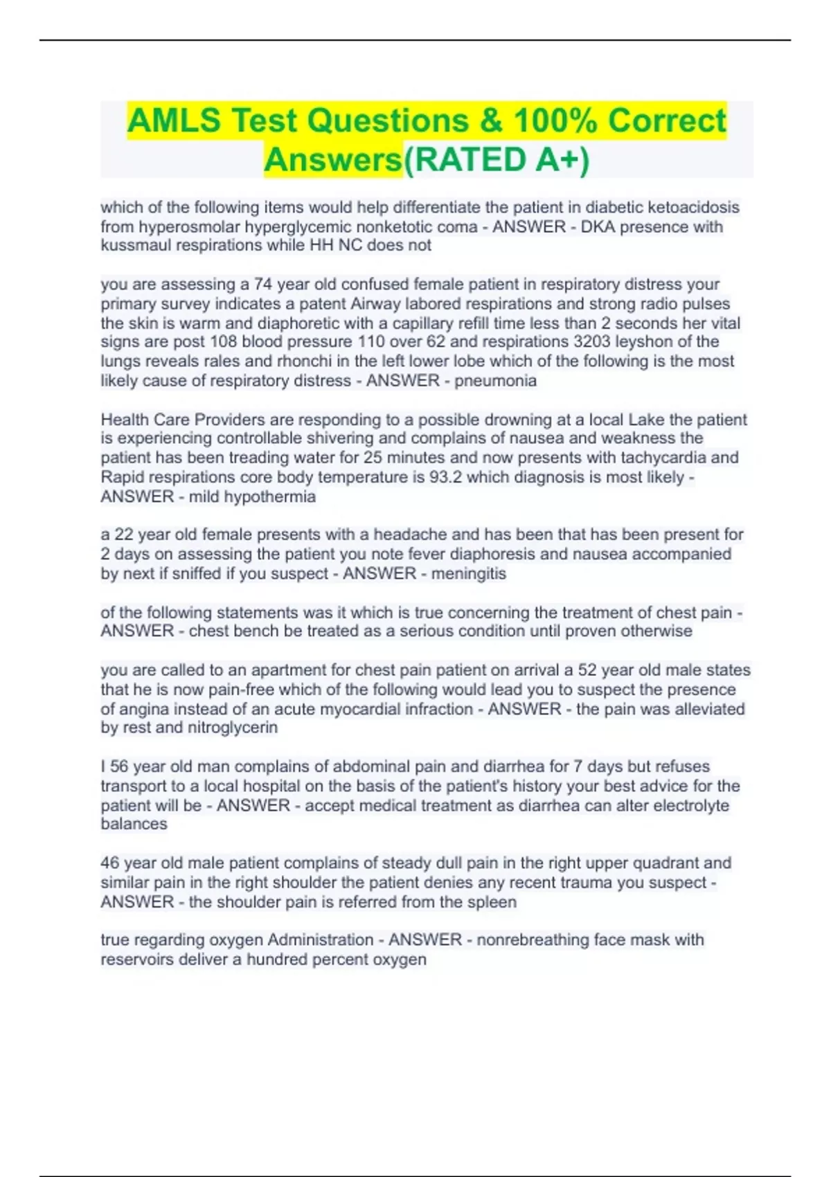 AMLS Test Questions & 100% Correct Answers(RATED A+)