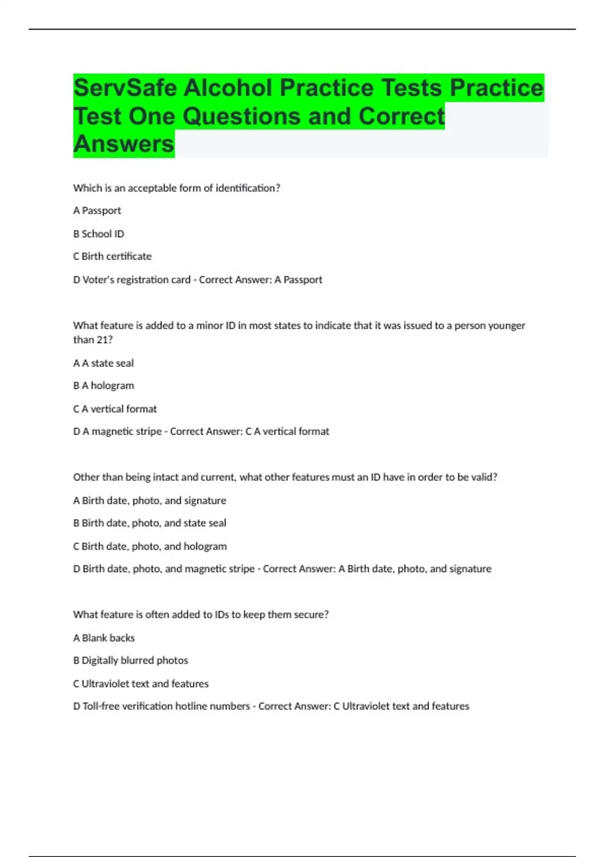 ServSafe Alcohol Practice Tests Practice Test One Questions and Correct Answers