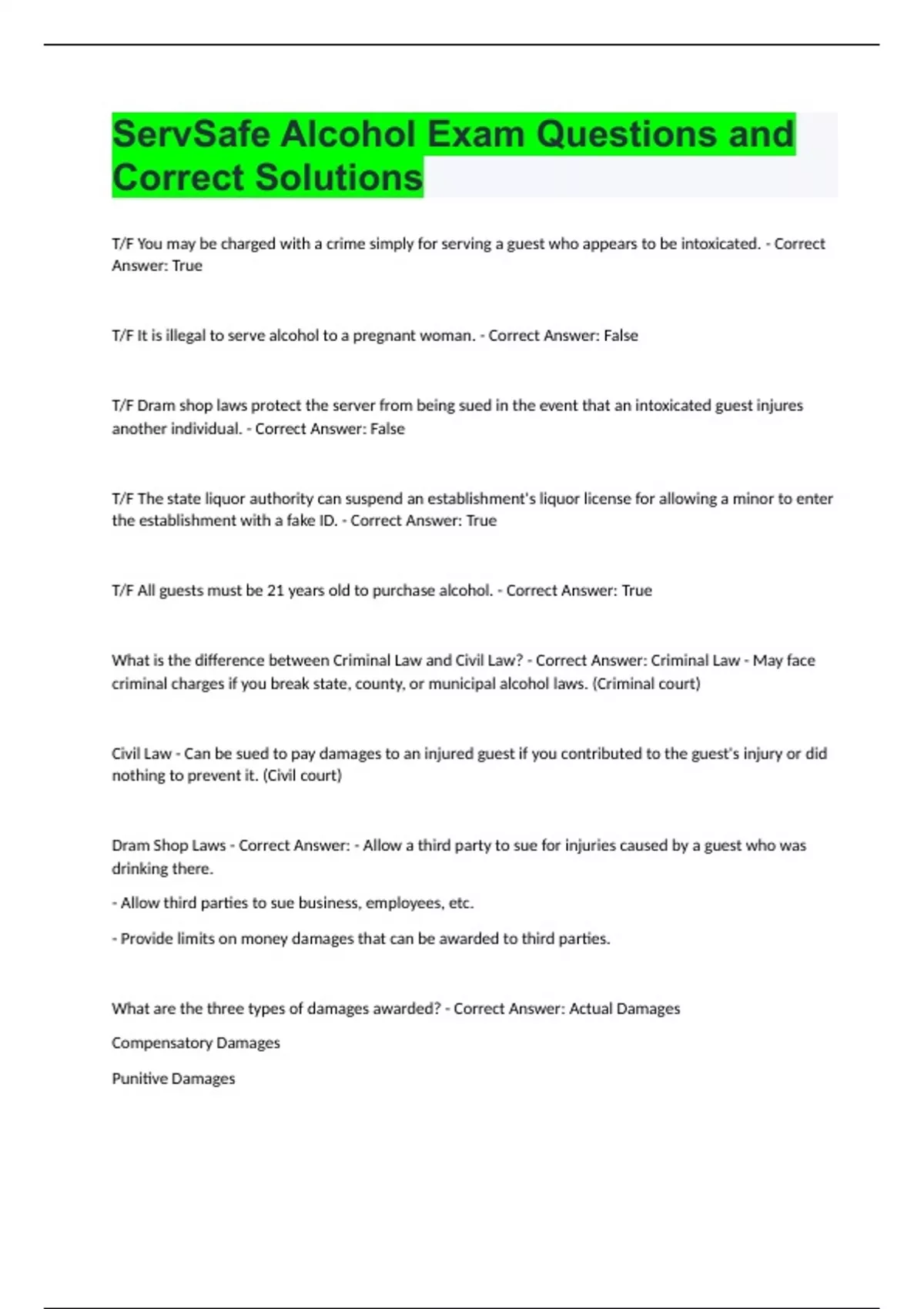 ServSafe Alcohol Exam Questions and Correct Solutions