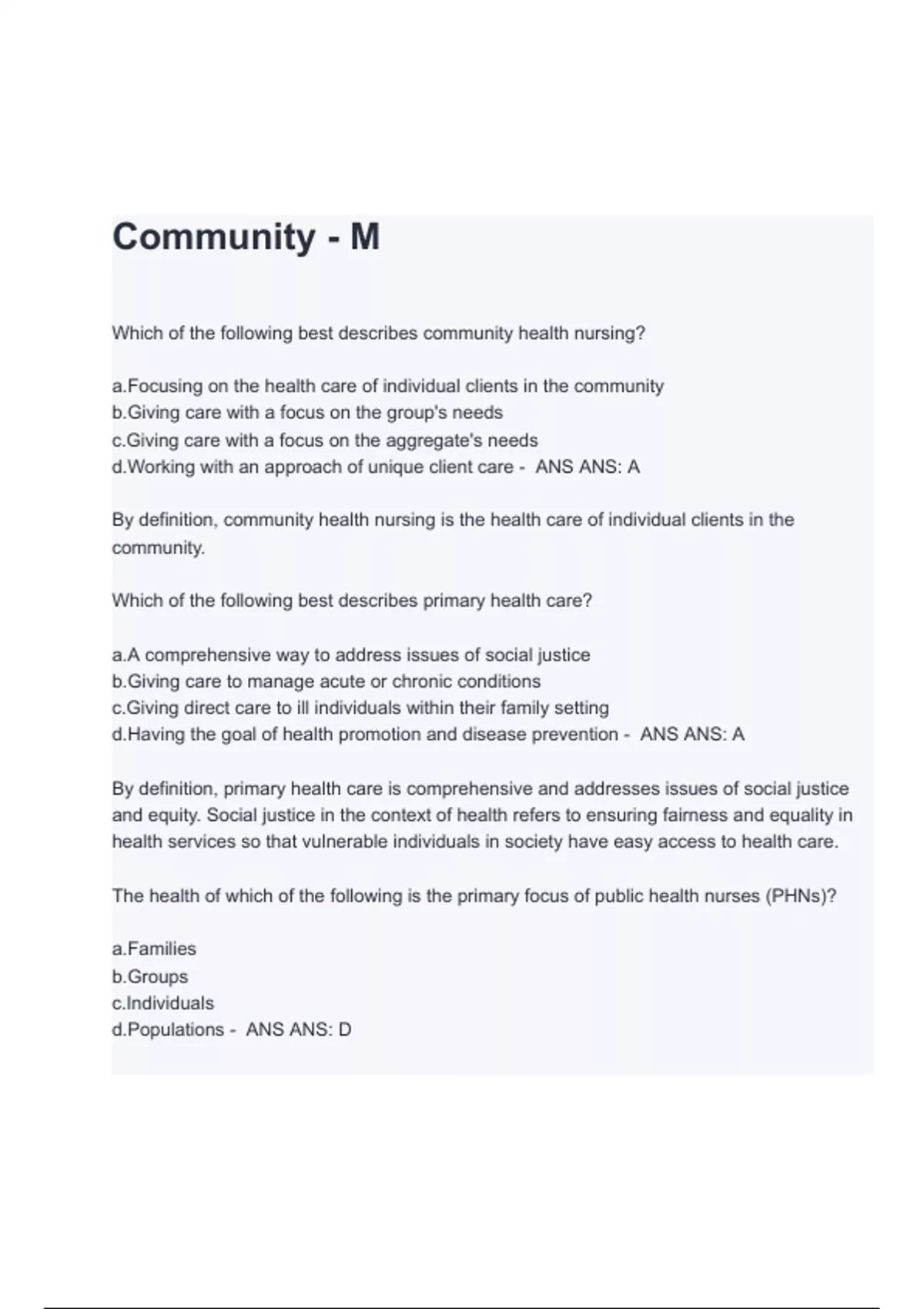 Summary Community Health Nursing Study Guide