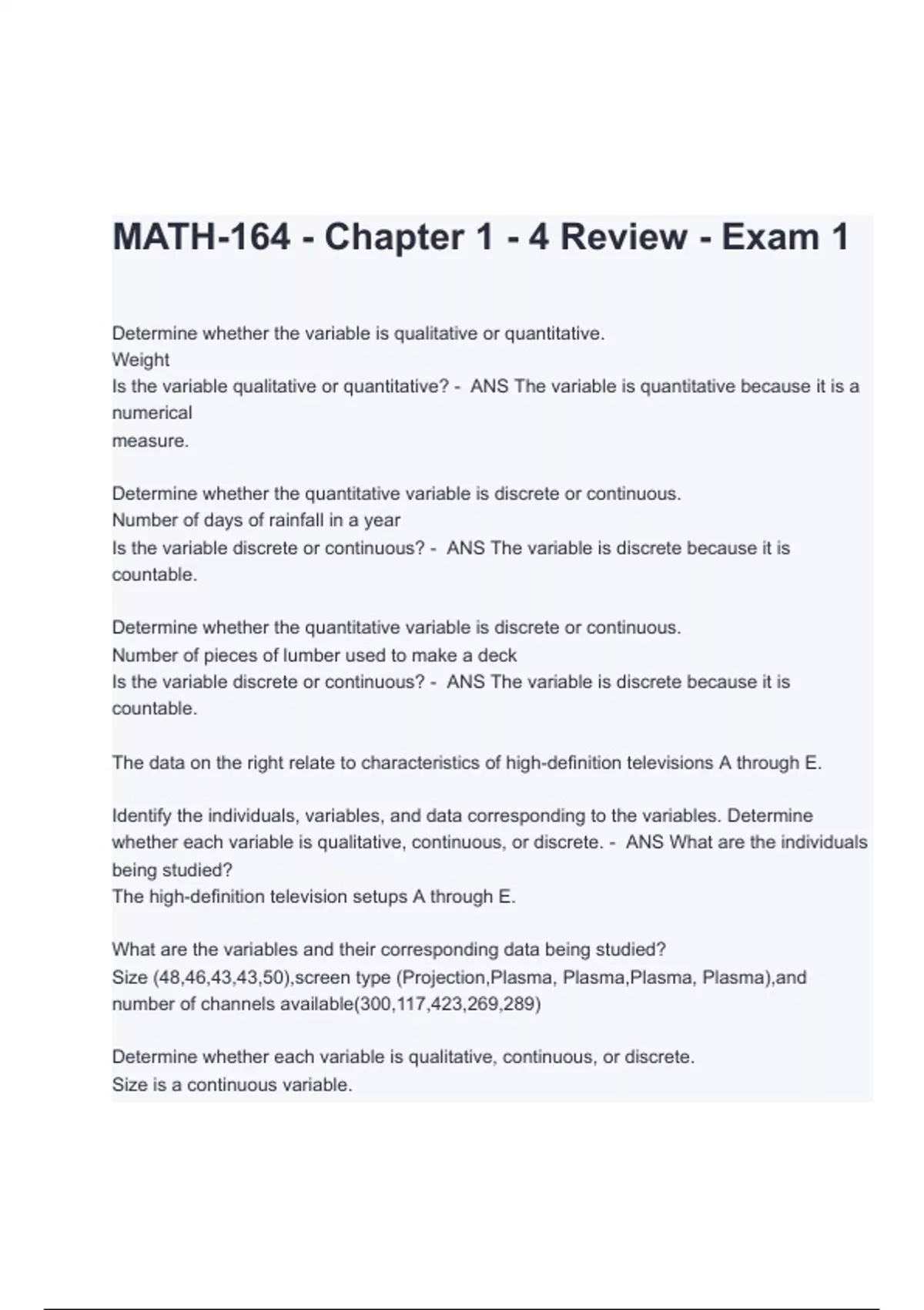 MATH-164 - Chapter 1 - 4 Review - Exam 1 Questions and Answers (A+ GRADED 100% VERIFIED)