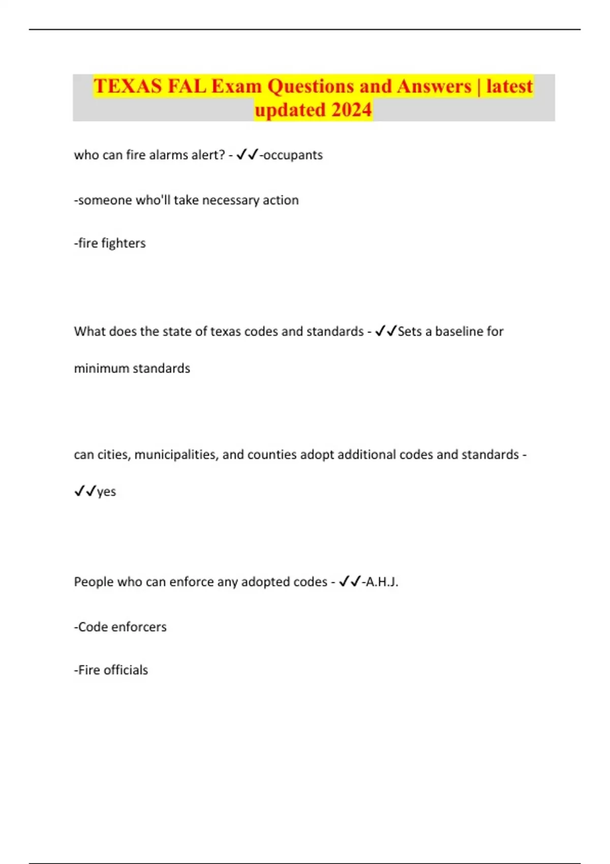 TEXAS FAL Exam Questions and Answers | latest updated 2024