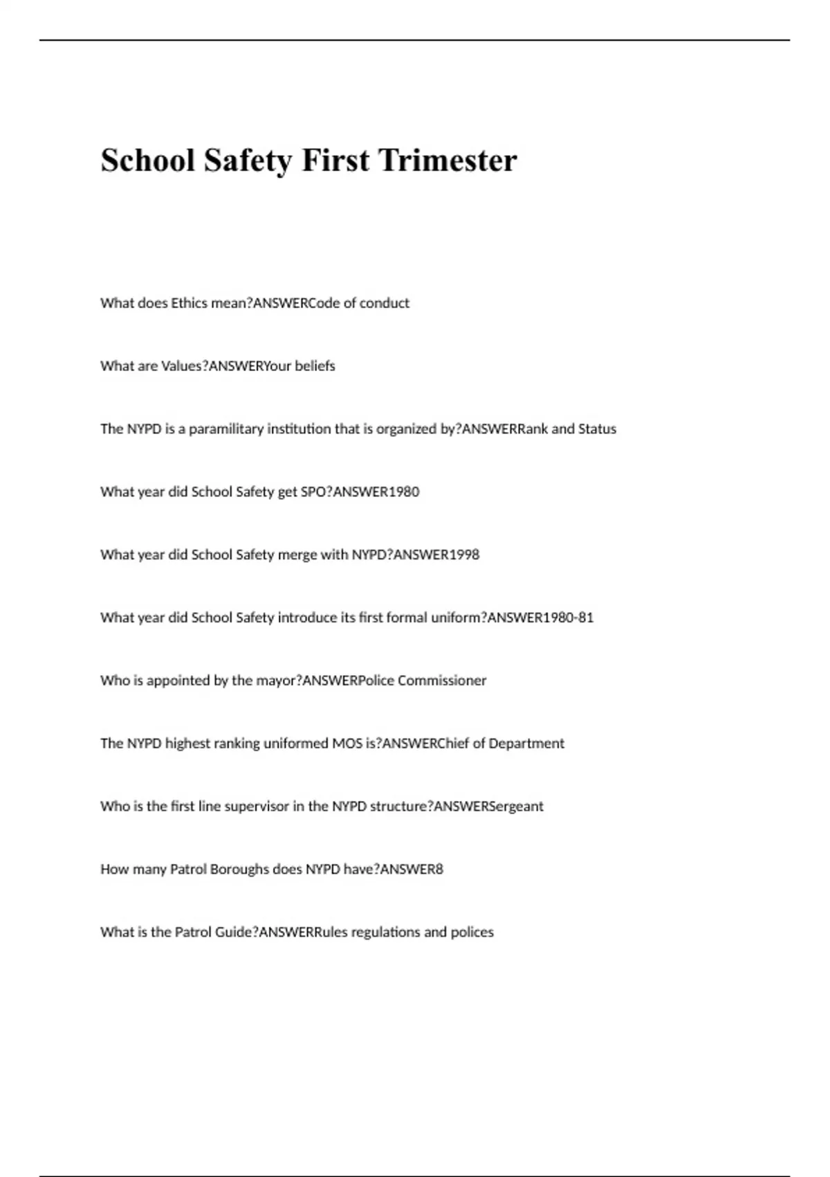 PACKAGE DEAL FOR: NYPD test Questions and Answers 2024 Latest Edition