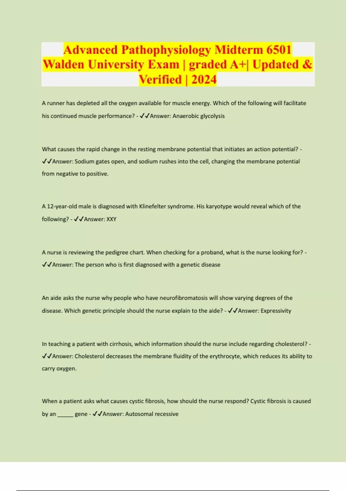 Advanced Pathophysiology Midterm 6501 Walden University Exam | graded A+| Updated & Verified | 2024