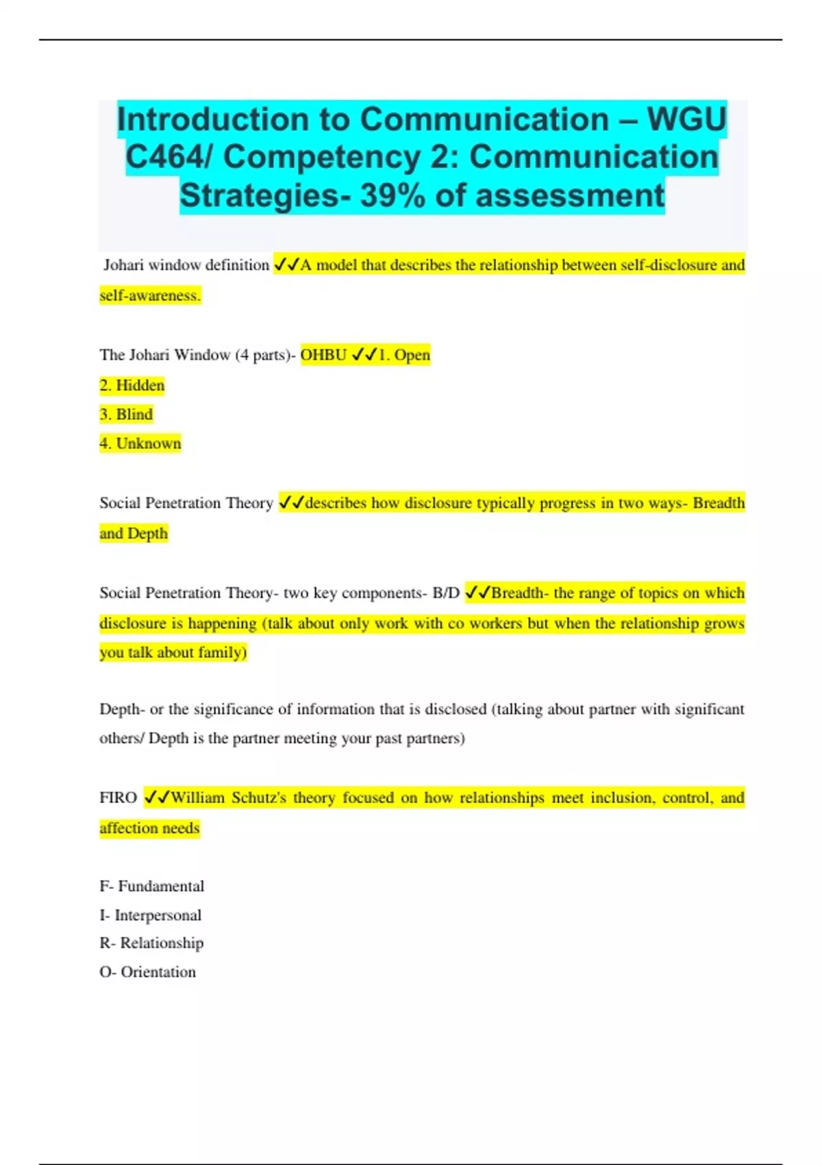 Introduction to Communication – WGU C464/ Competency 2: Communication Strategies- 39% of assessment