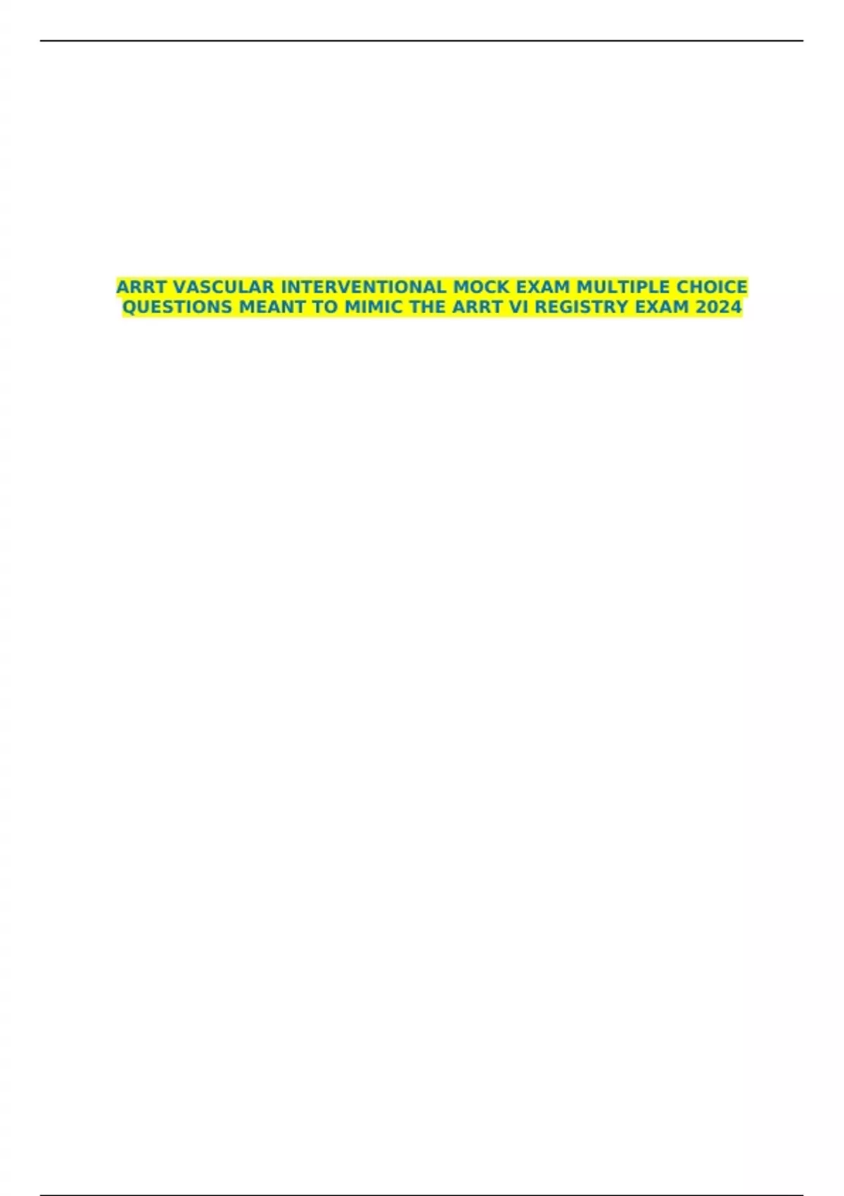 ARRT VASCULAR INTERVENTIONAL MOCK EXAM MULTIPLE CHOICE QUESTIONS MEANT TO MIMIC THE ARRT VI REGISTRY EXAM 2024