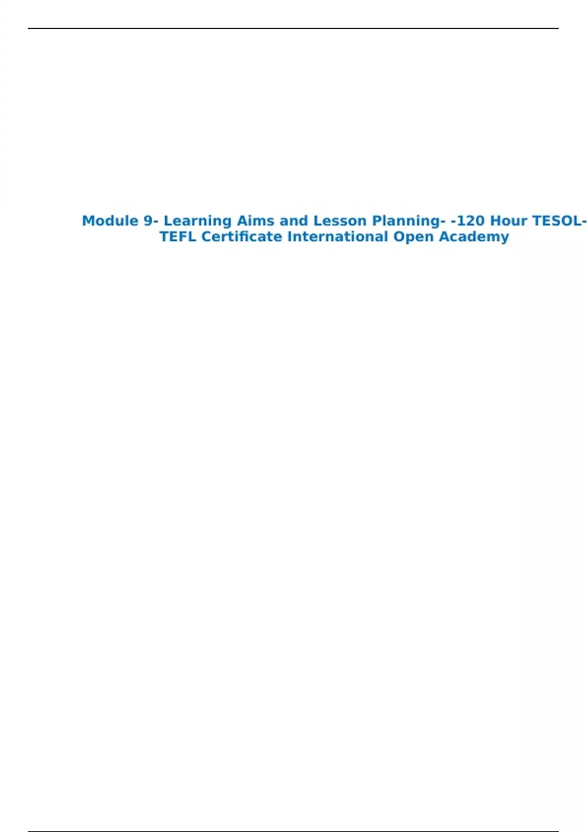 Module 9- Learning Aims and Lesson Planning- -120 Hour TESOL- TEFL Certificate International Open Academy