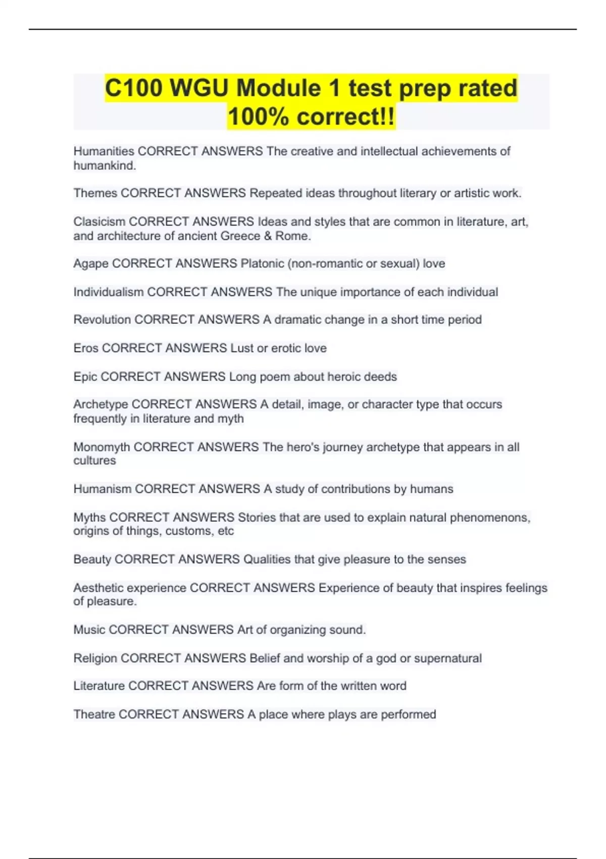 C100 WGU Module 1 test prep rated 100% correct!!
