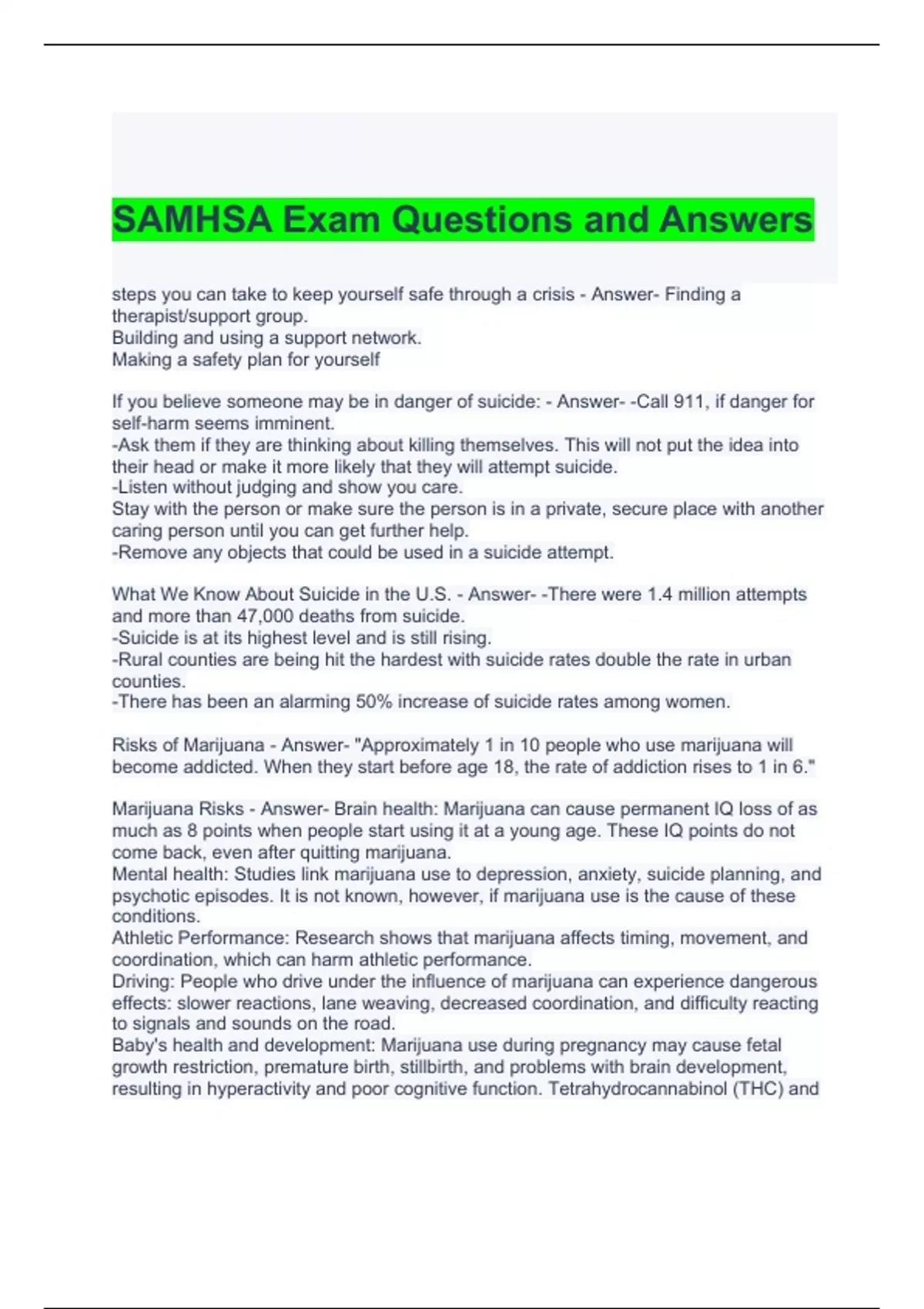 SAMHSA Exam Questions and Answer 2024