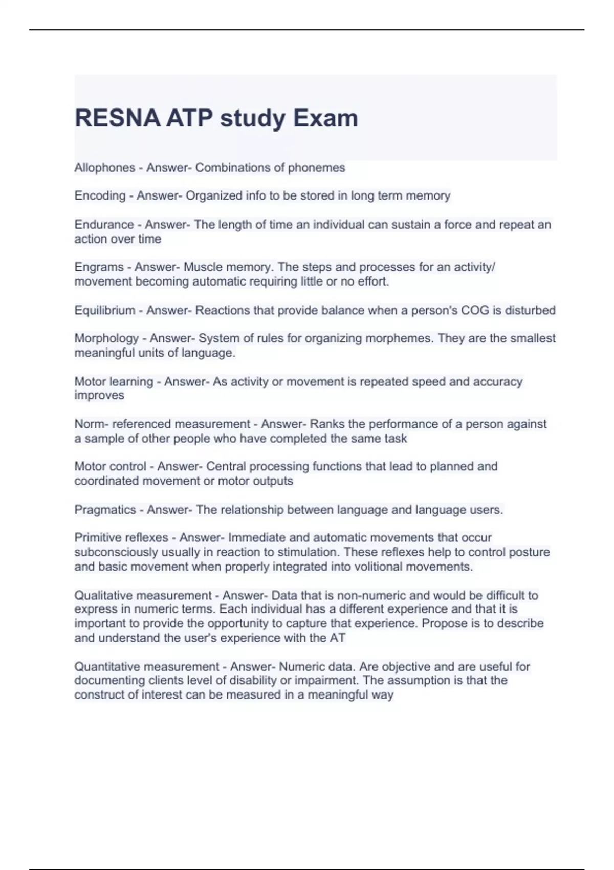 RESNA ATP Exam Bundle (Graded A)