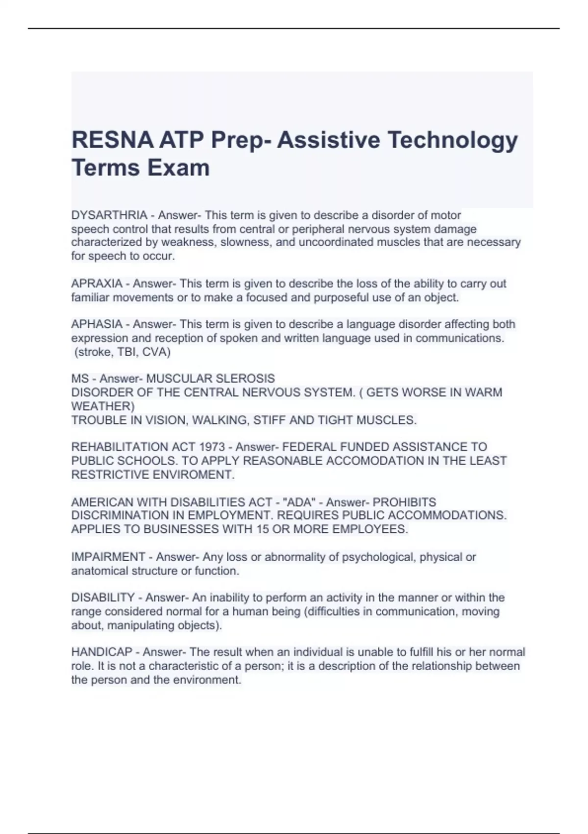 RESNA ATP Prep- Assistive Technology Terms Exam