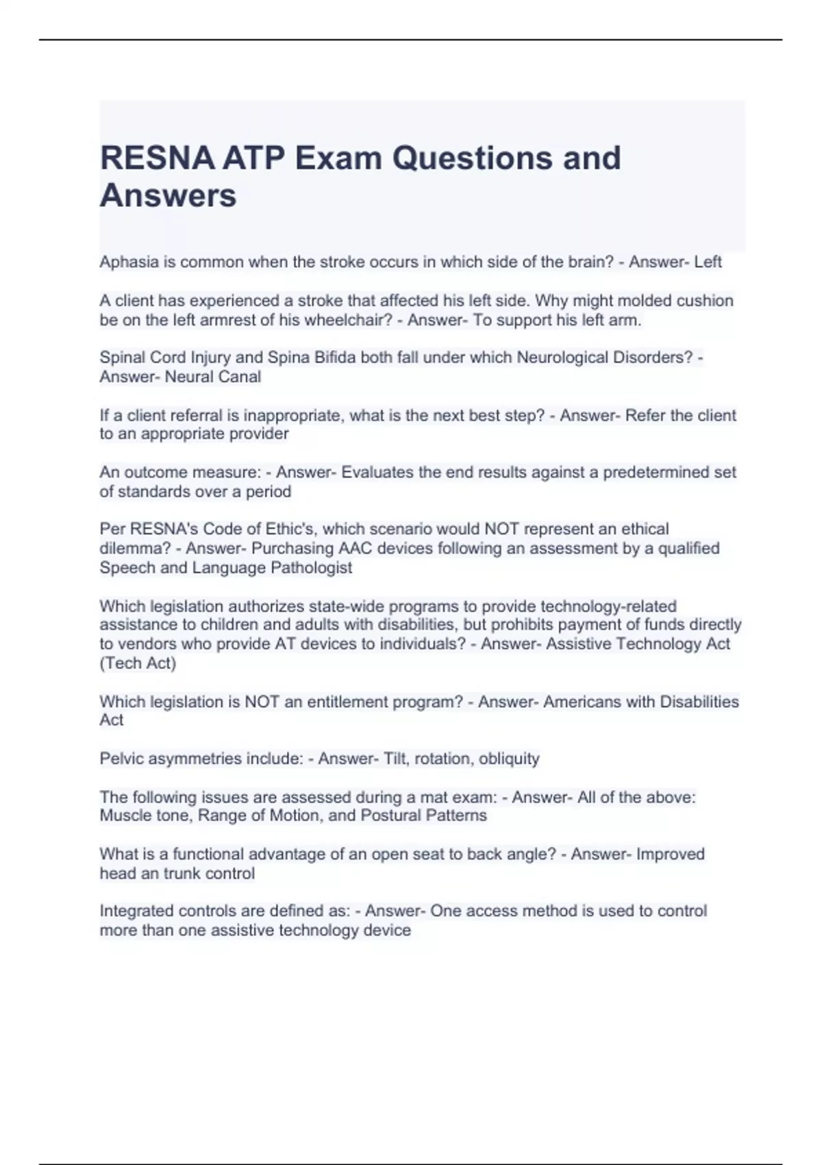 RESNA ATP Exam Questions and Answers