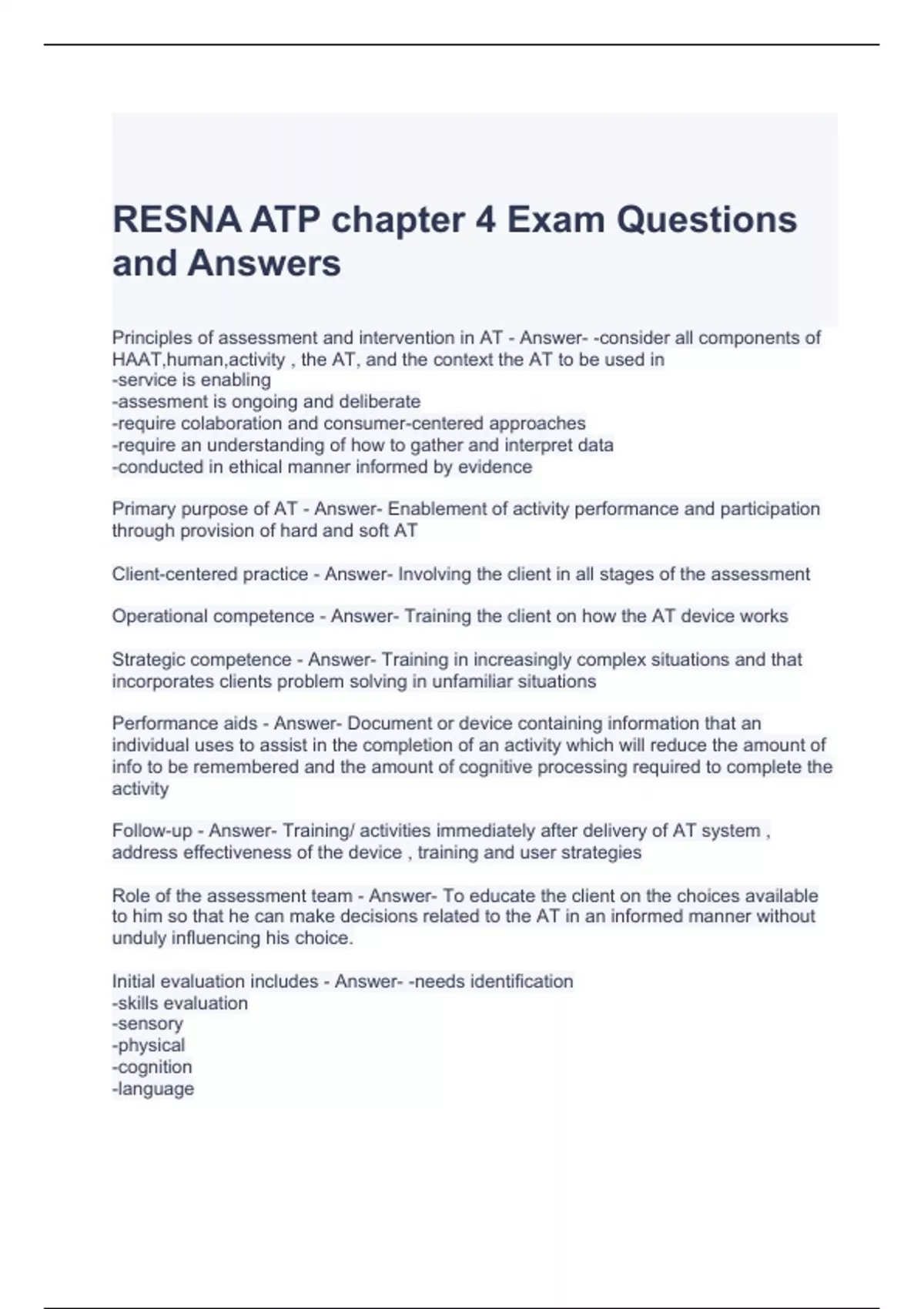 RESNA ATP chapter 4 Exam Questions and Answers- Graded A