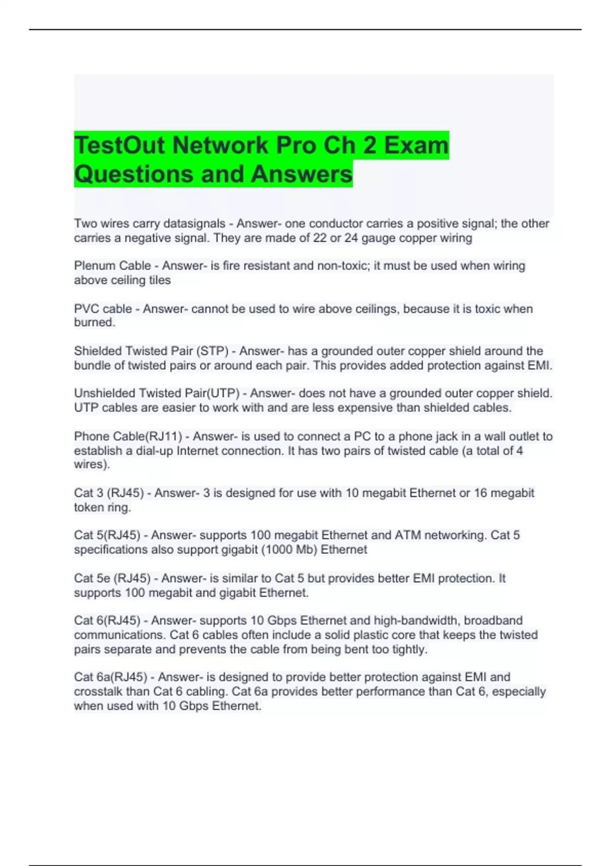 TestOut Network Pro Ch 2 Exam Questions and Answers