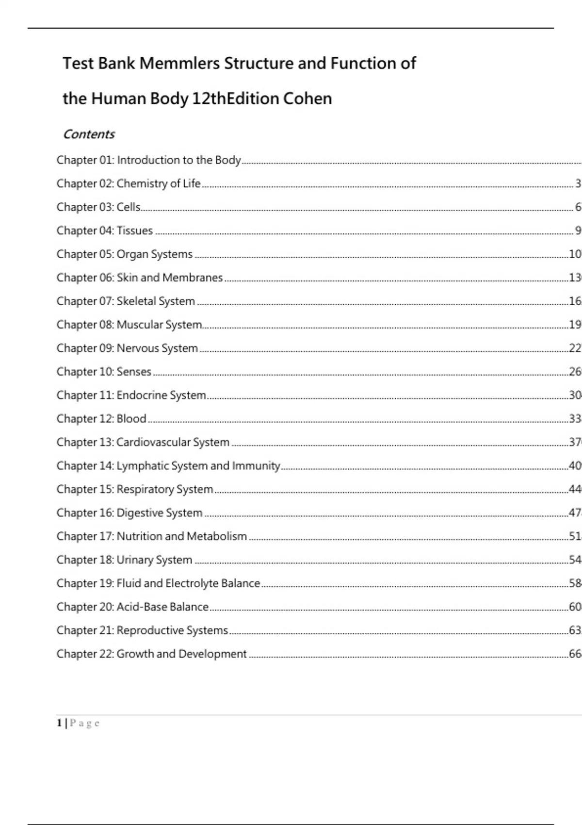 Test Bank Memmlers Structure and Function of the Human Body 12th Edition Cohen
