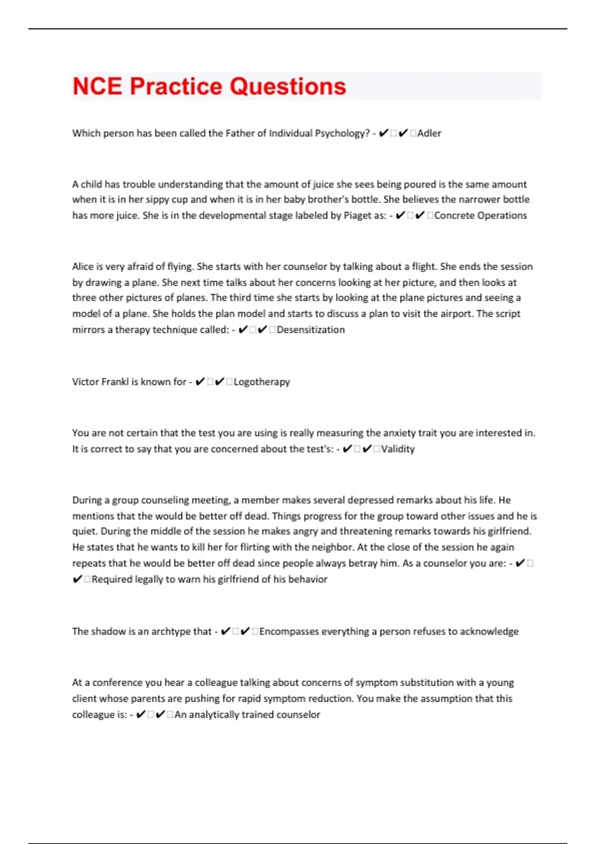 NCE 46 Practice Questions And Answers