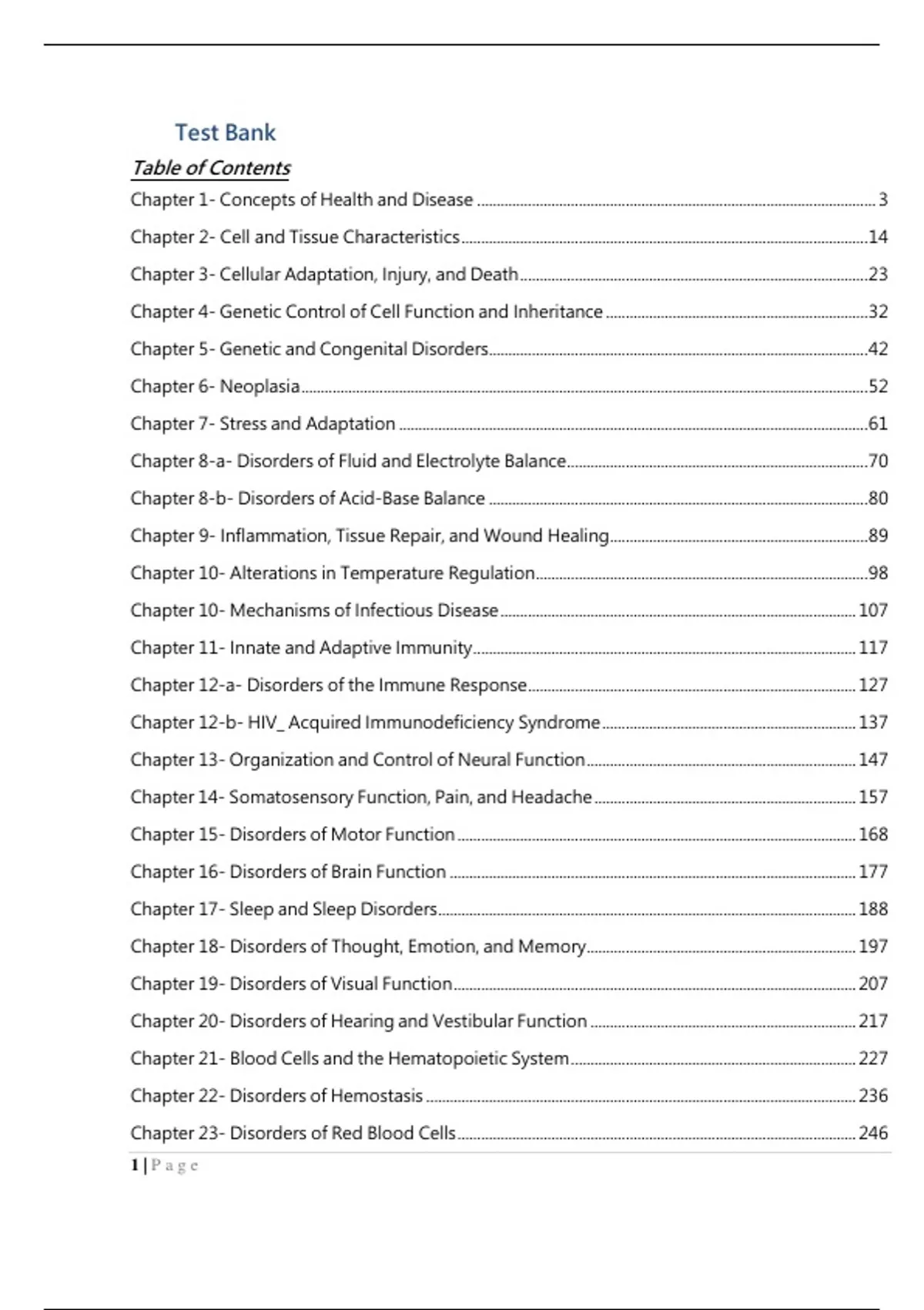 Test Bank Porth's Pathophysiology Concepts of Altered Health 10th Edition Norris