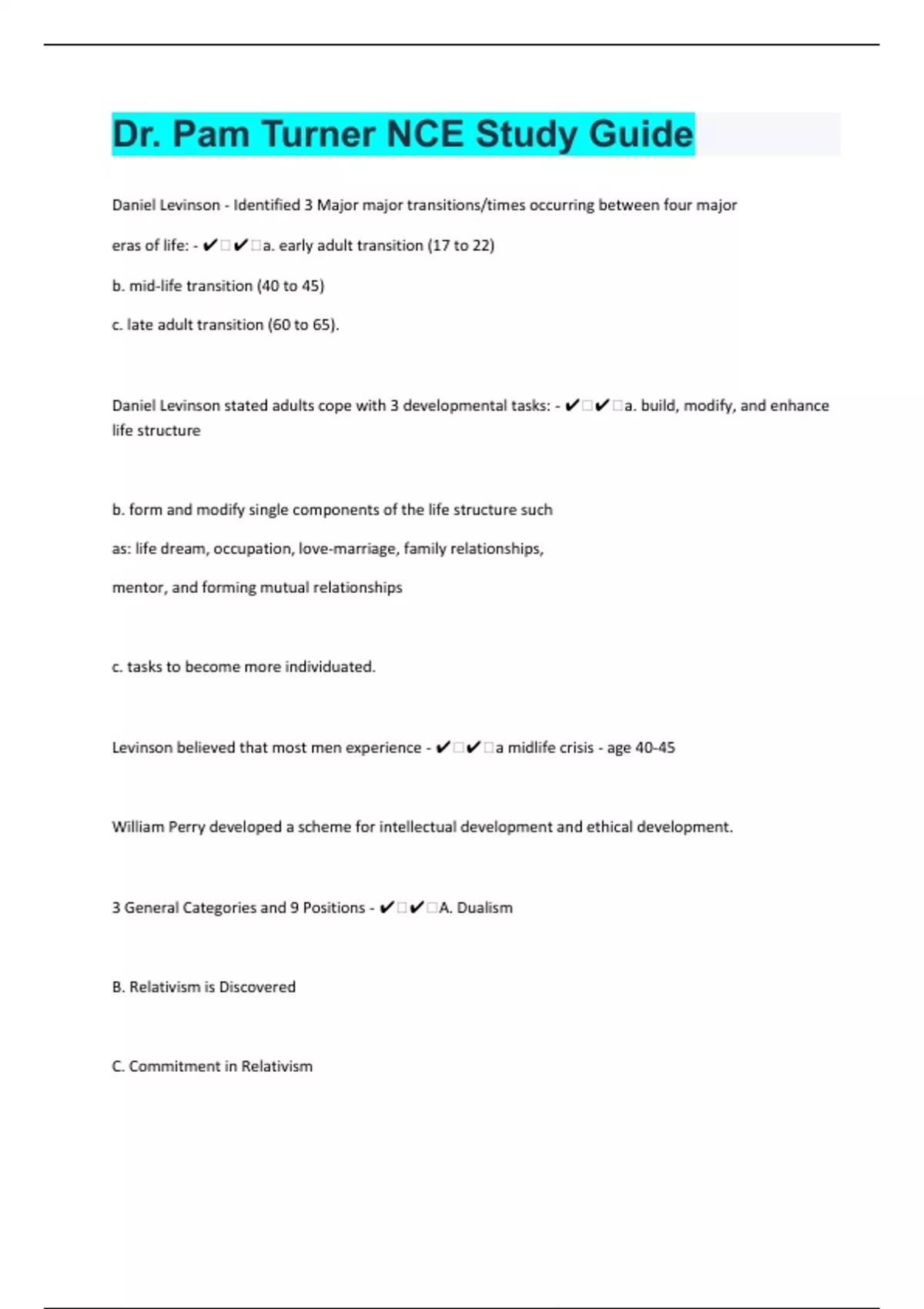 Dr. Pam Turner NCE 196 Study Guide Questions and Answers New Year Update 2024 Solved 100%