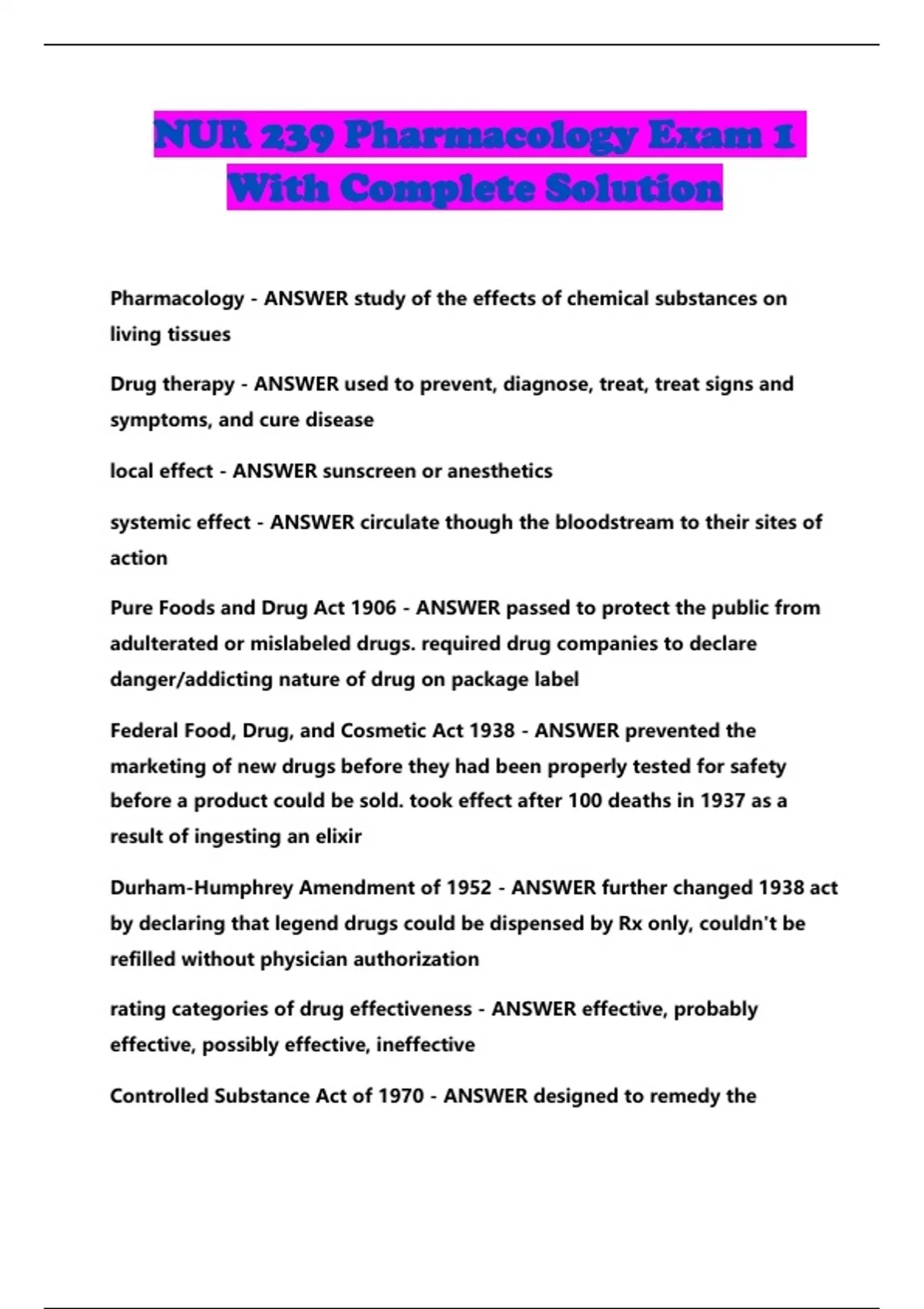 NUR 239 Pharmacology Exam 1 With Complete Solution...