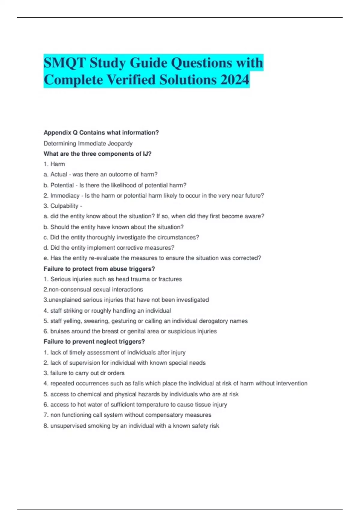 SMQT Study Guide Questions with Complete Verified Solutions 2024