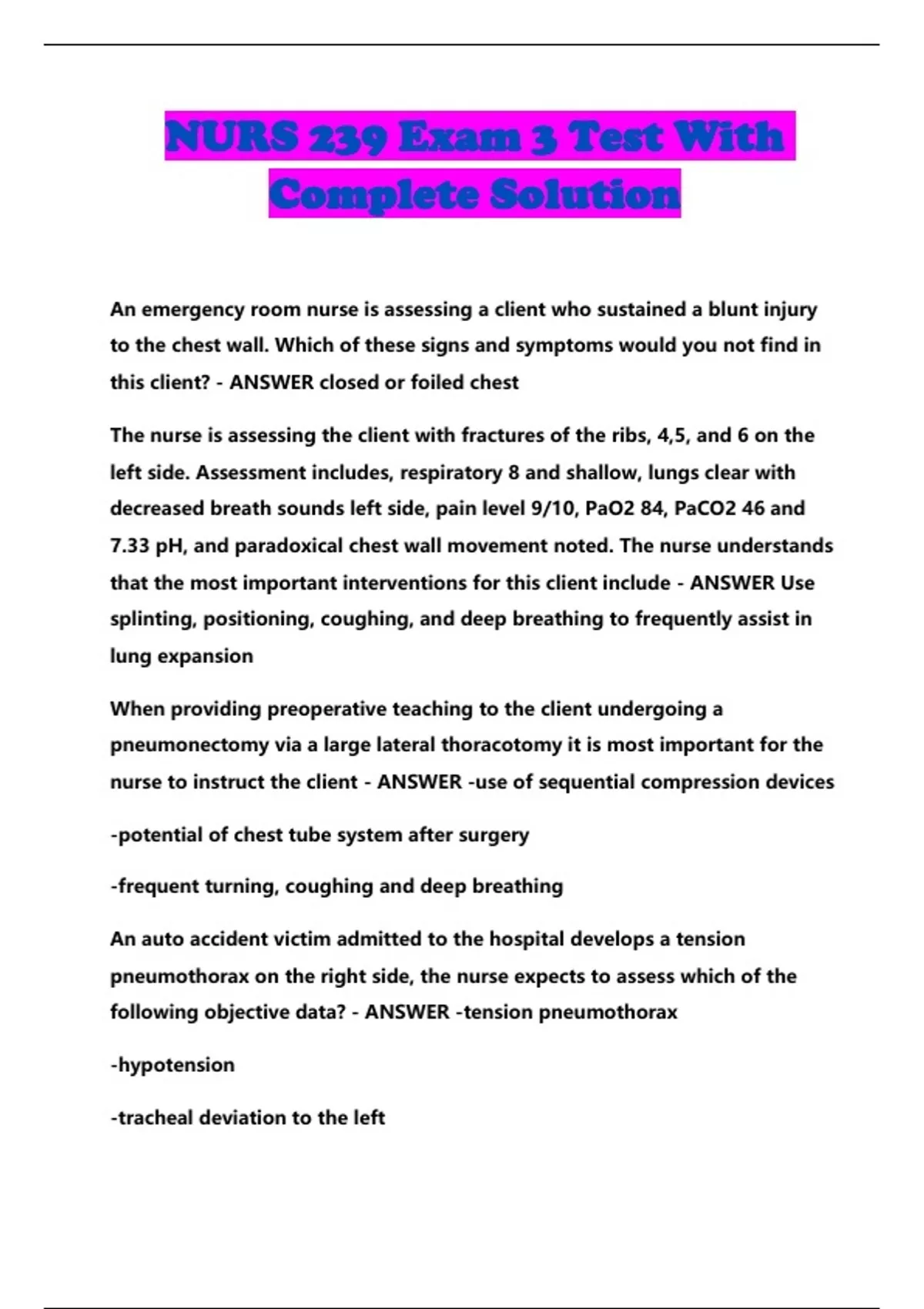 NUR 239 BUNDLED EXAMS @ 2024