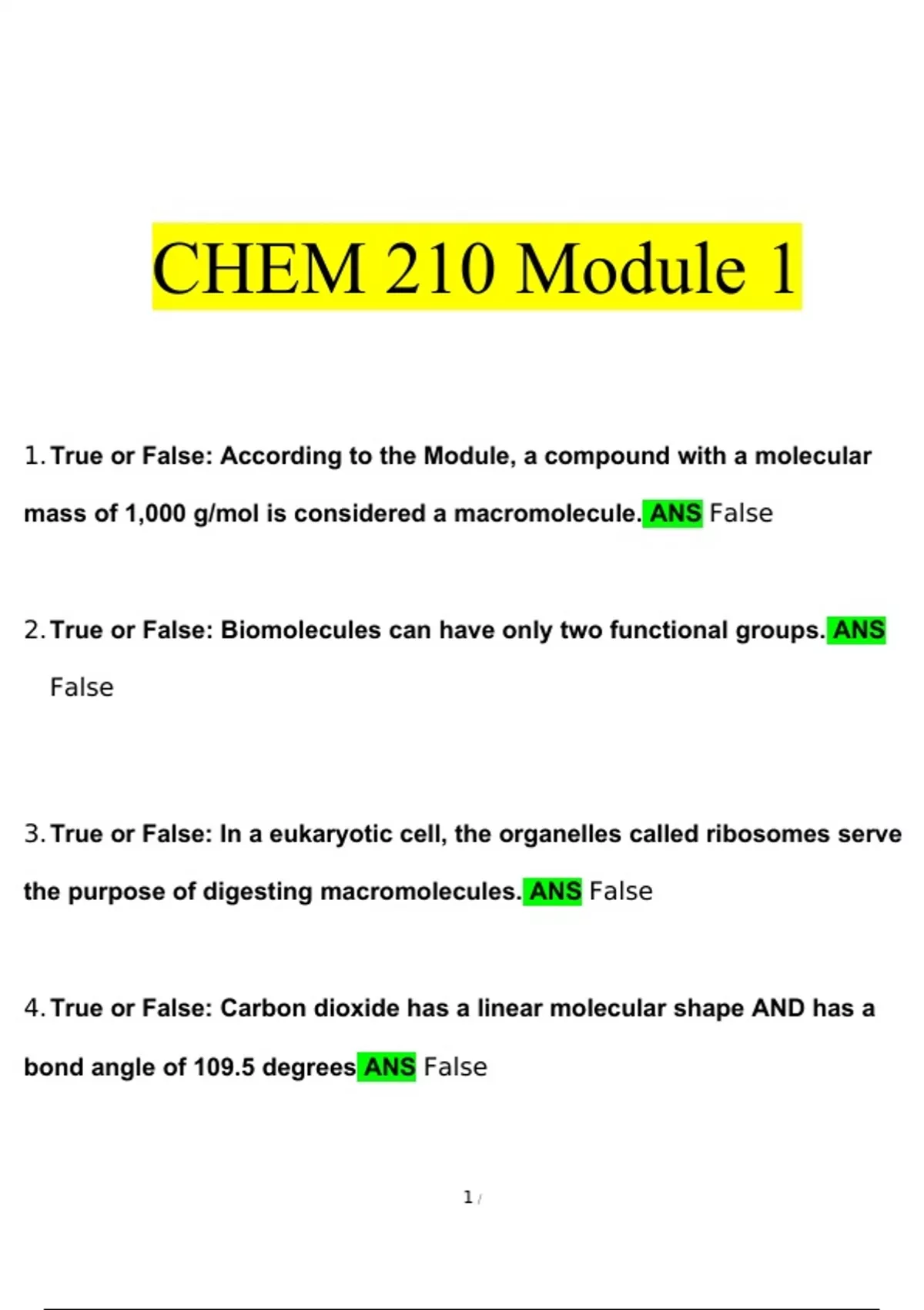Portage Learning Chem 210 Module 1 Exam
