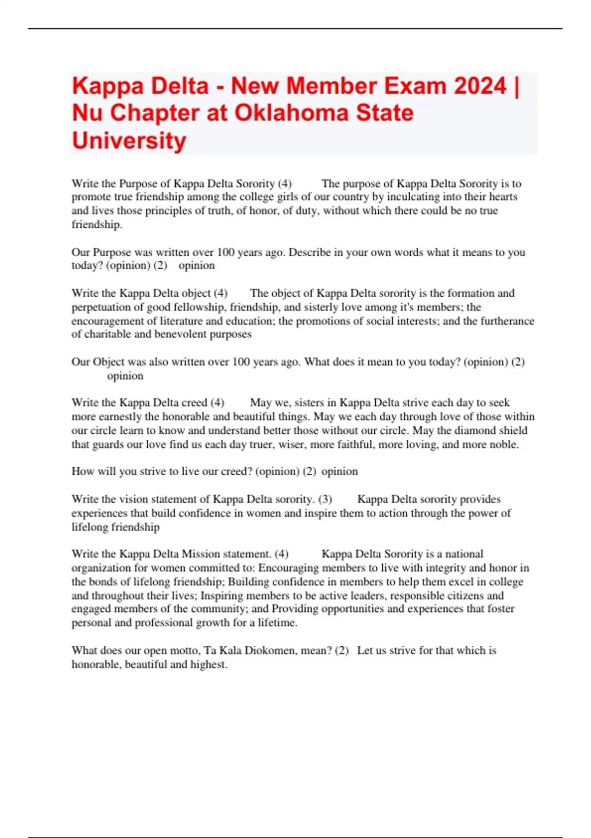 Kappa Delta - New Member Exam 2024 | Nu Chapter at Oklahoma State University