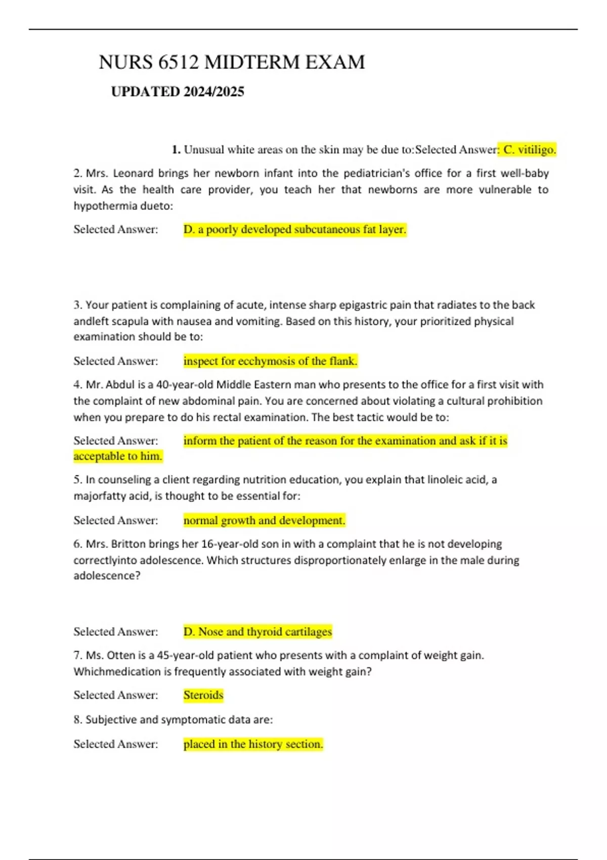 NURS 6512 MIDTERM EXAM UPDATED 2024/2025