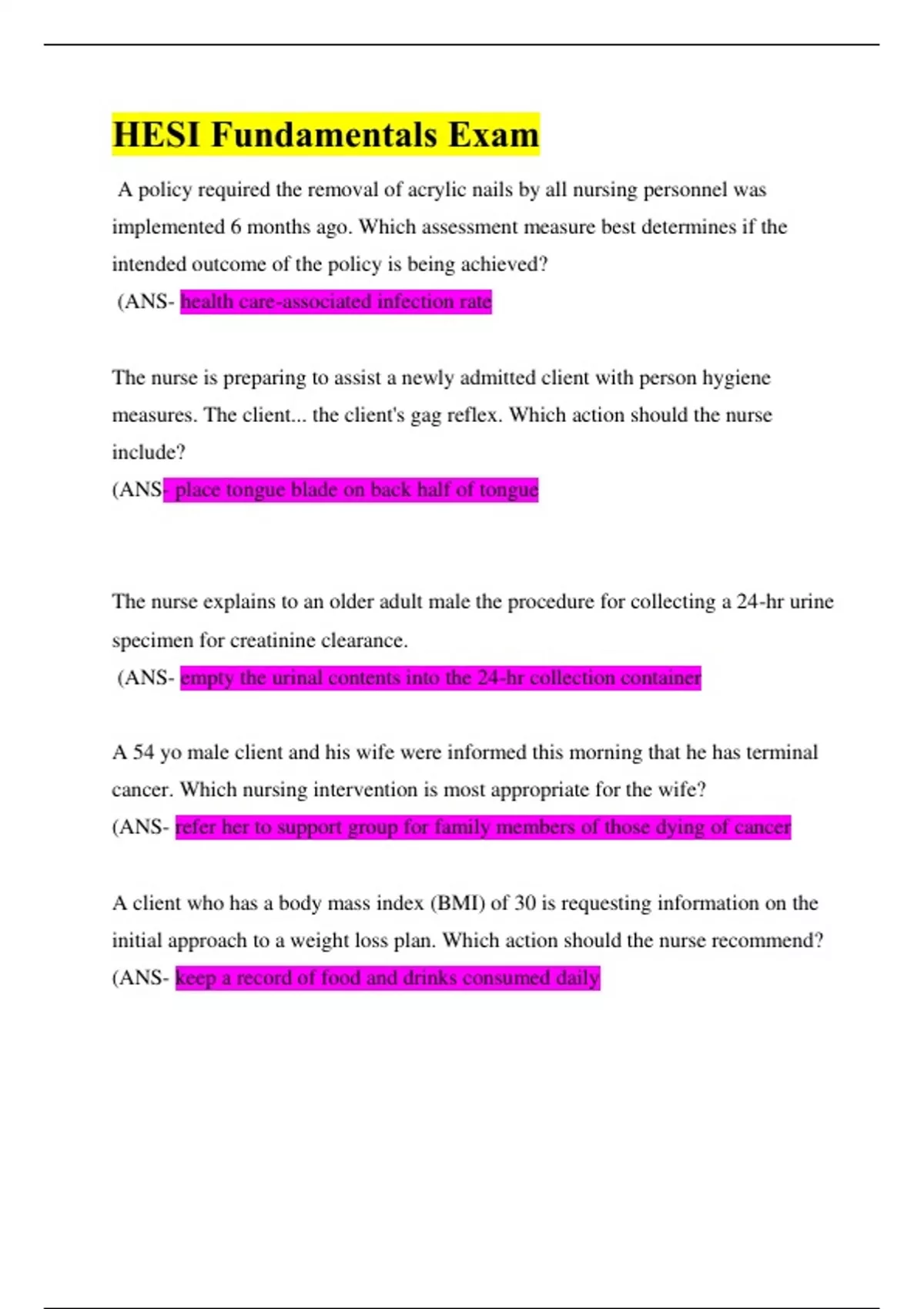 HESI Fundamentals Exam