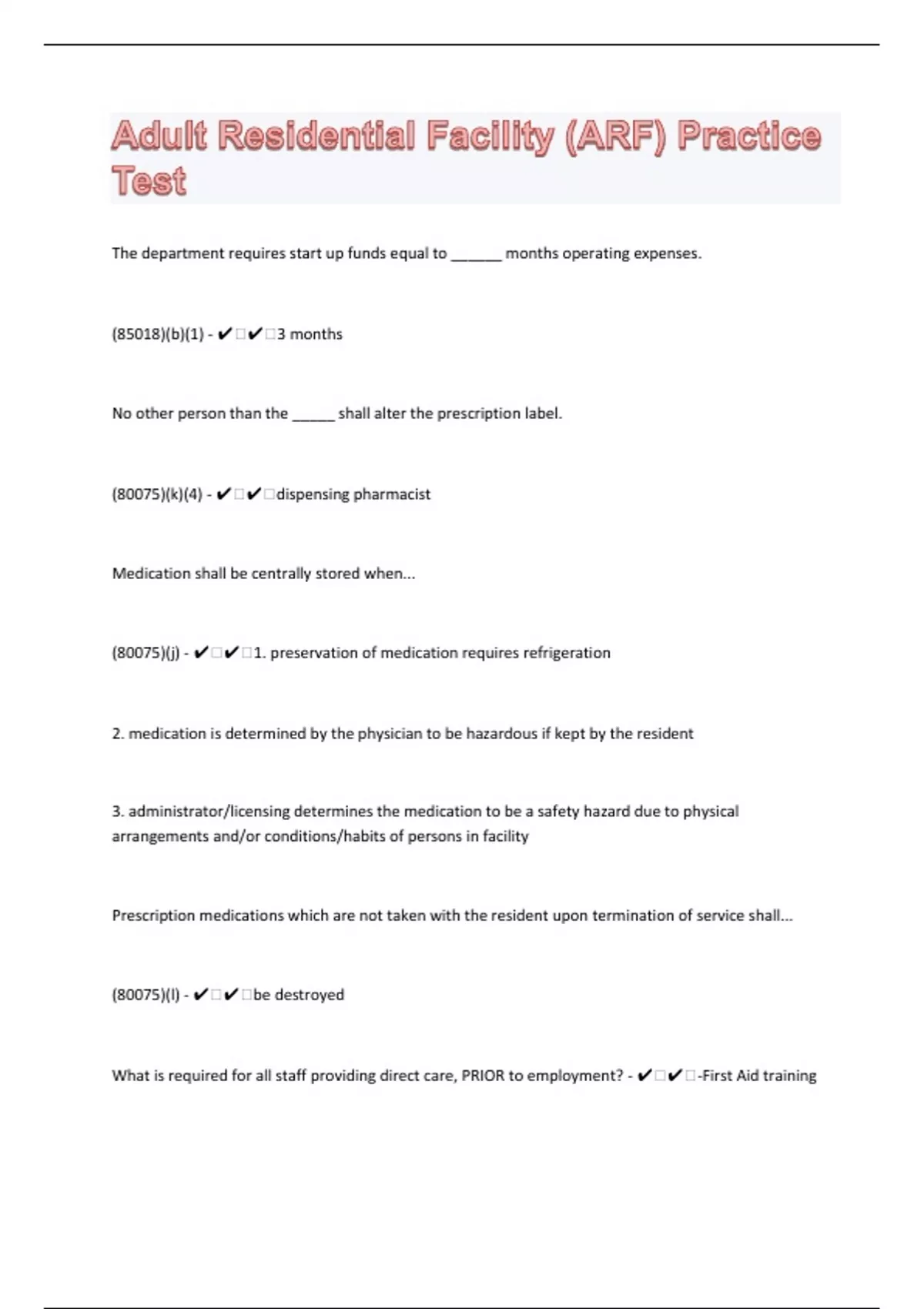 Adult Residential Facility (ARF) 117 Practice Test Questions and Answers New Year Update 2024 Solved 100%