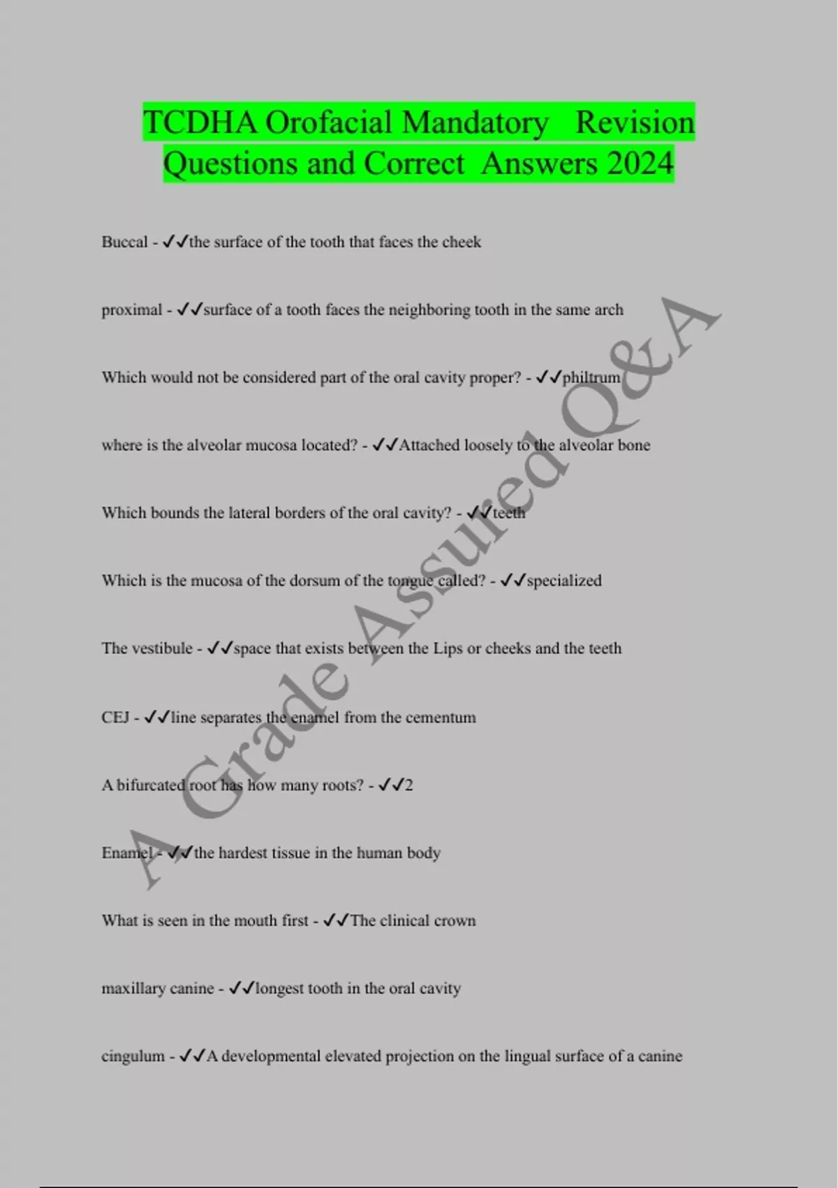 TCDHA Orofacial Mandatory Revision Questions and Correct Answers 2024