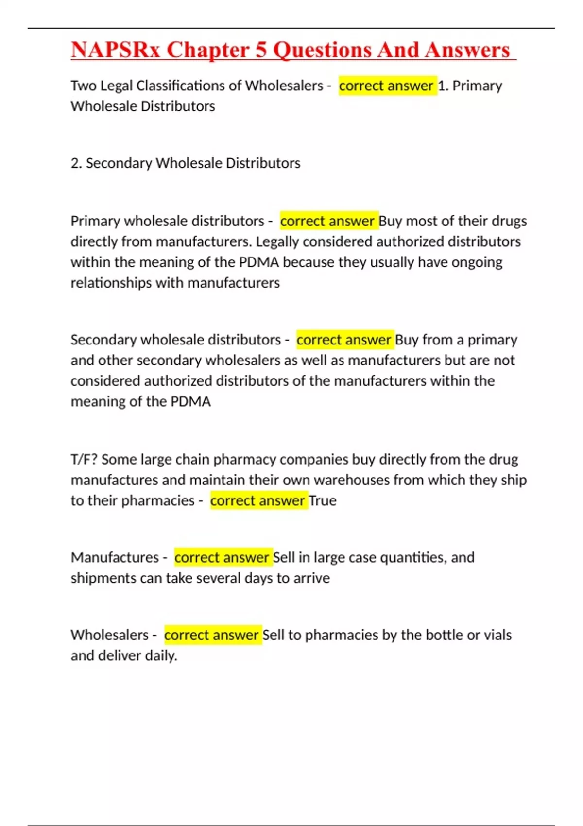 NAPSRx Chapter 5 Questions And Answers